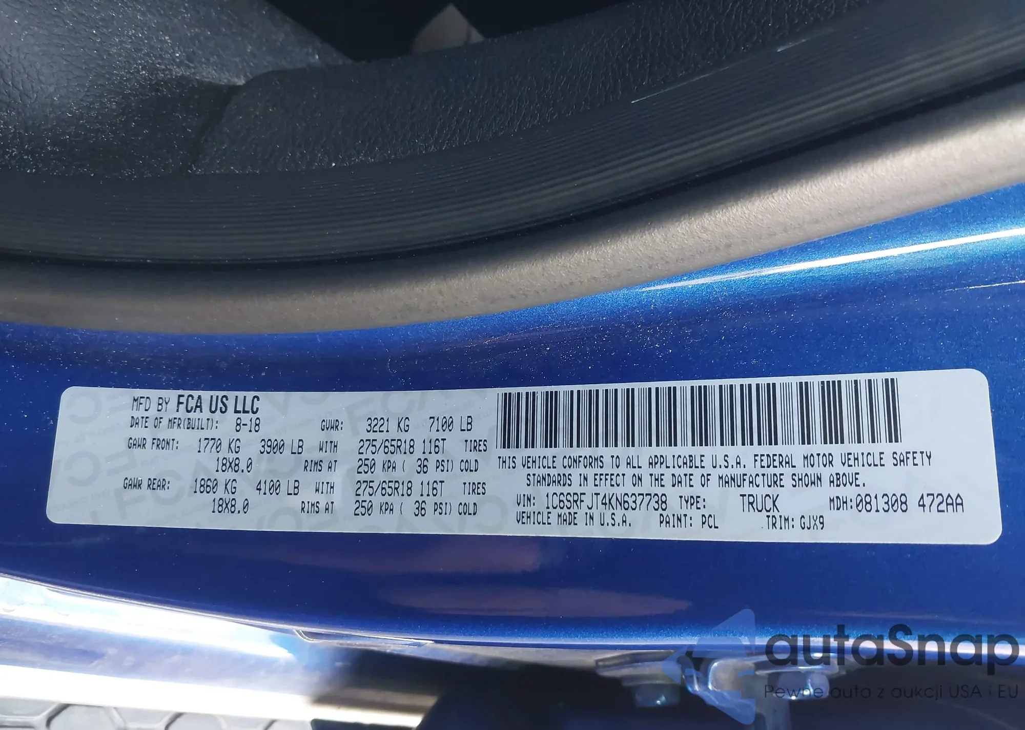 • VIN 1C6SRFJT4KN637738