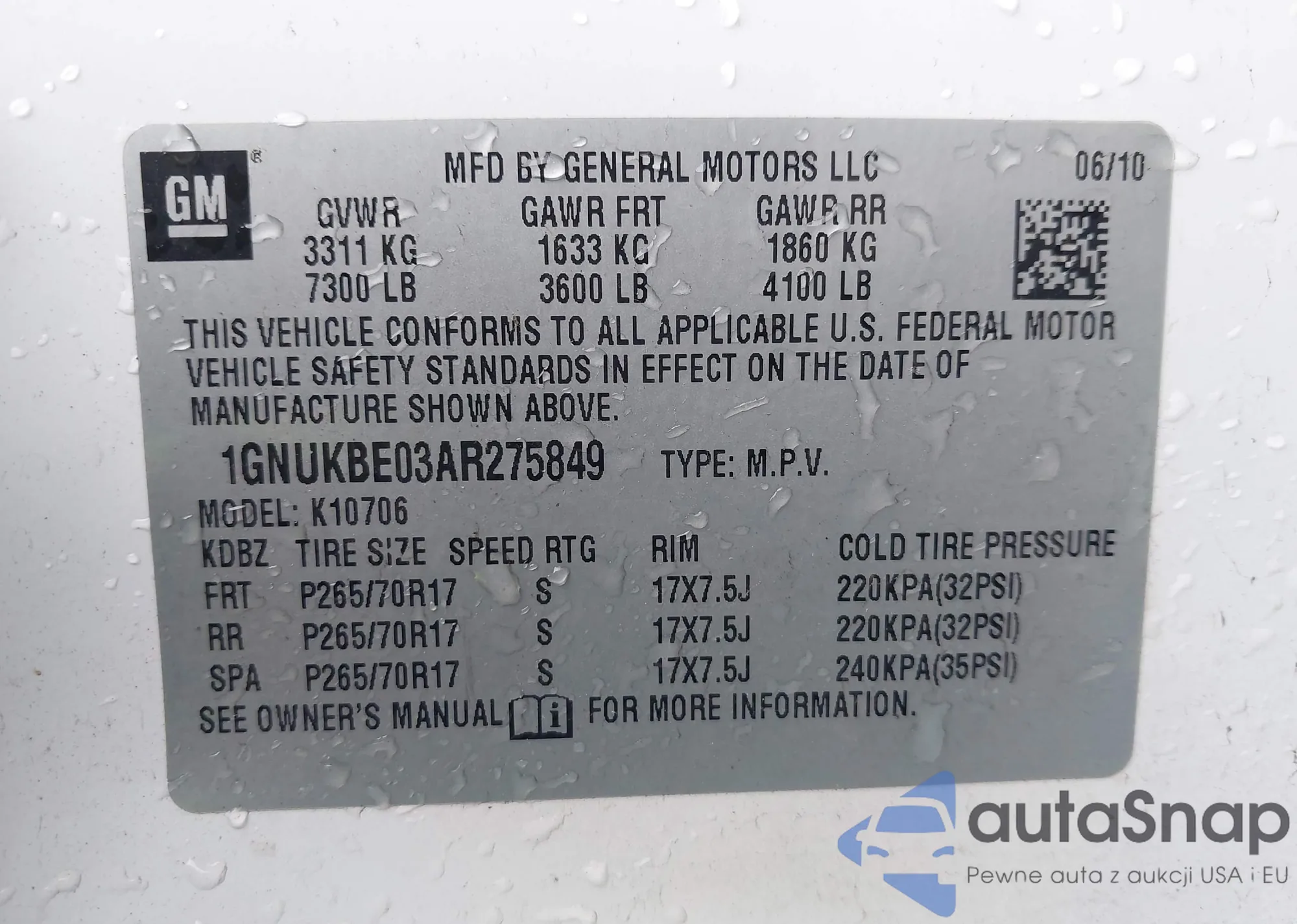 • VIN 1GNUKBE03AR275849