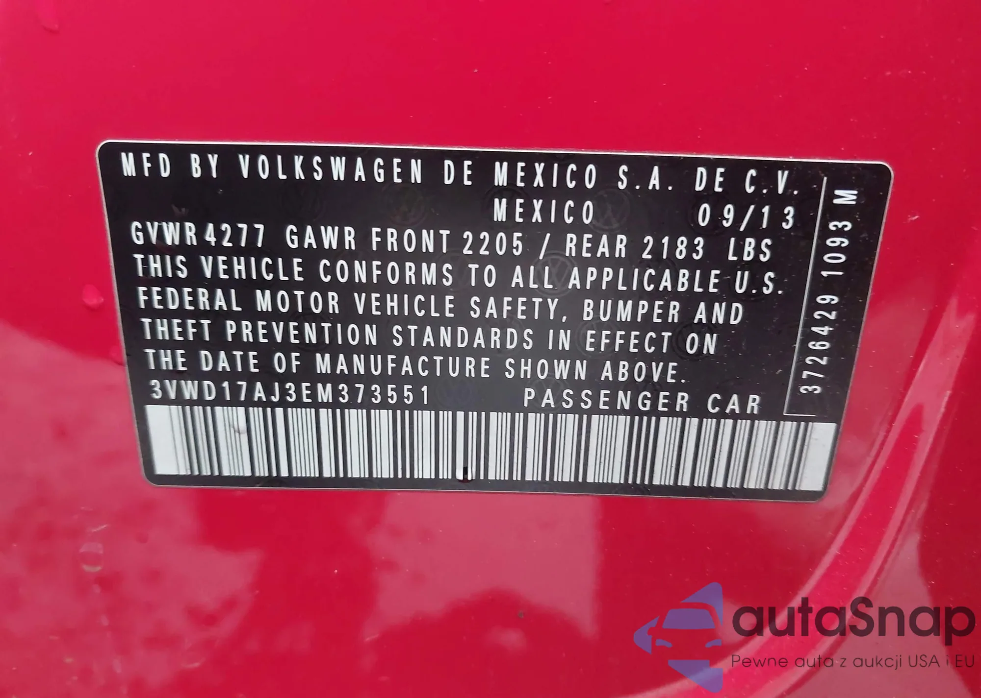 • VIN 3VWD17AJ3EM373551