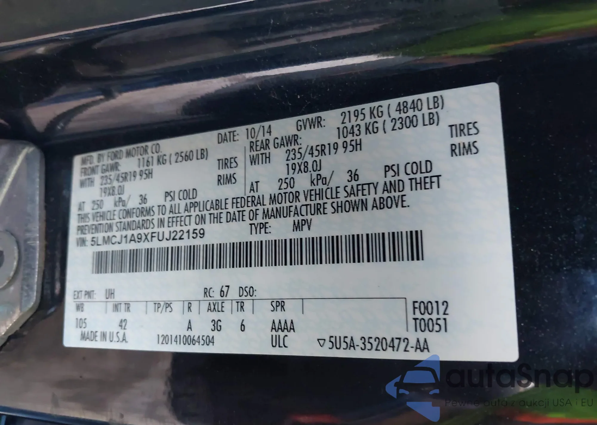 • VIN 5LMCJ1A9XFUJ22159