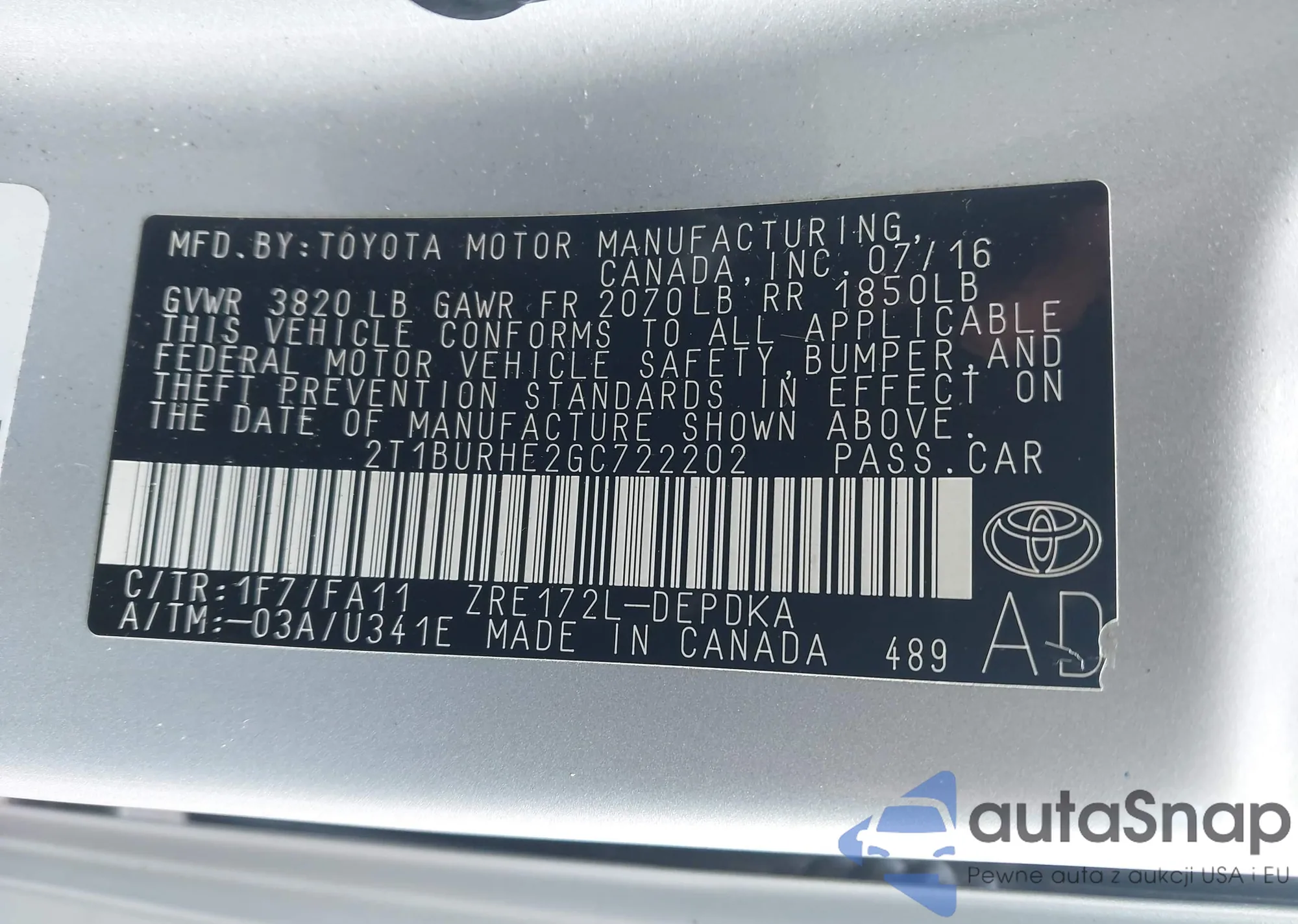 • VIN 2T1BURHE2GC722202
