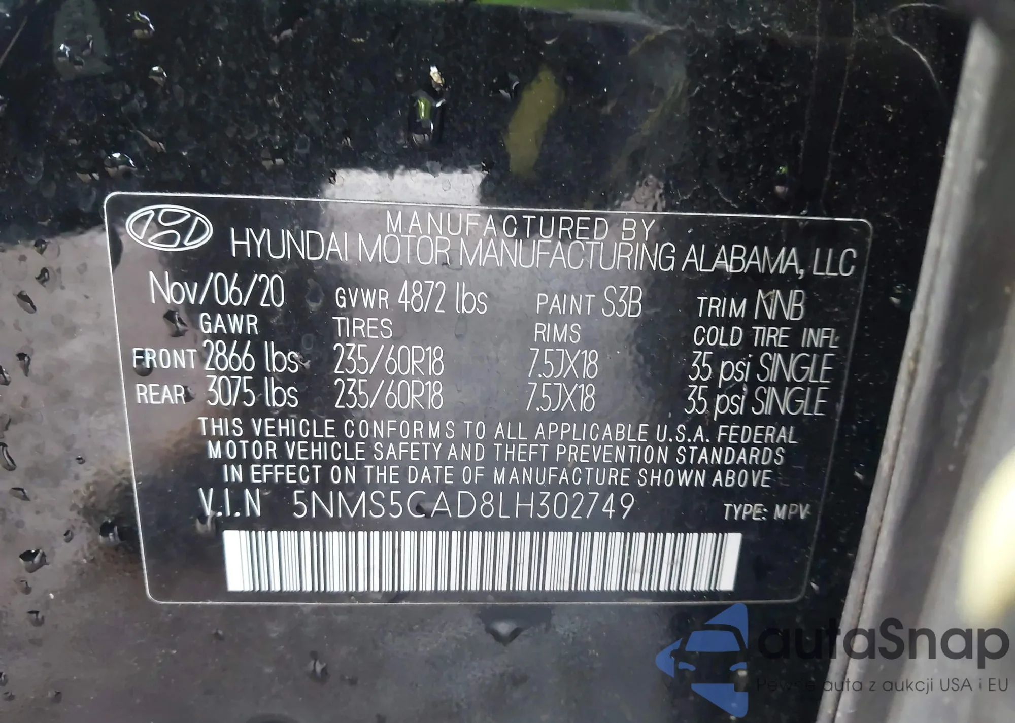 • VIN 5NPDH4AE7DH372360