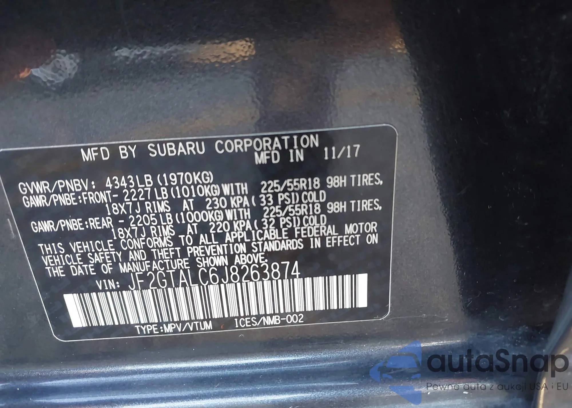LOT: 43673543 VIN: 1VWAA7A32JC026213