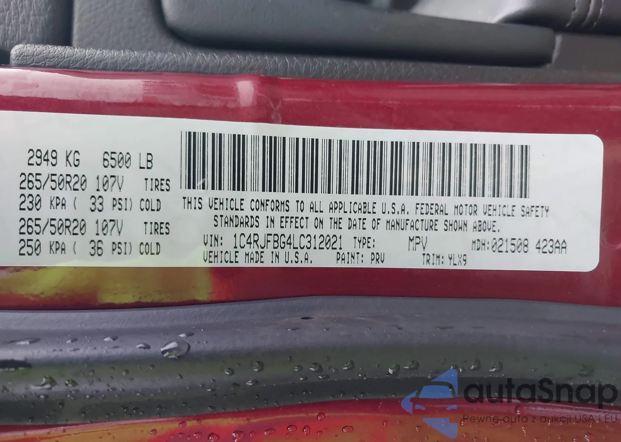 • VIN 1C4RJFBG4LC312021