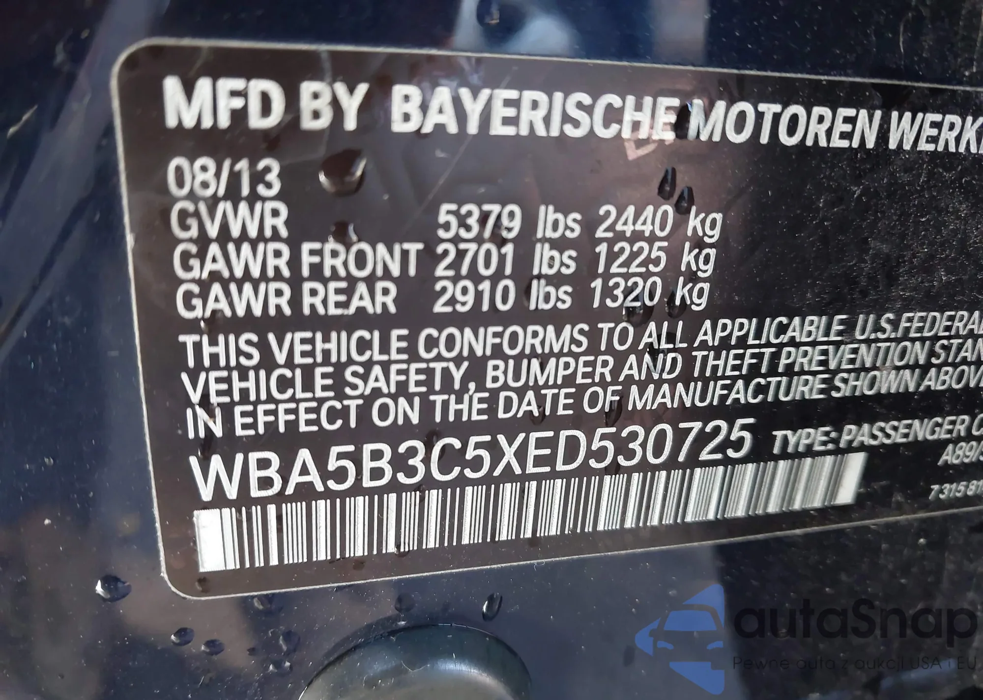 • VIN WBA5B3C5XED530725
