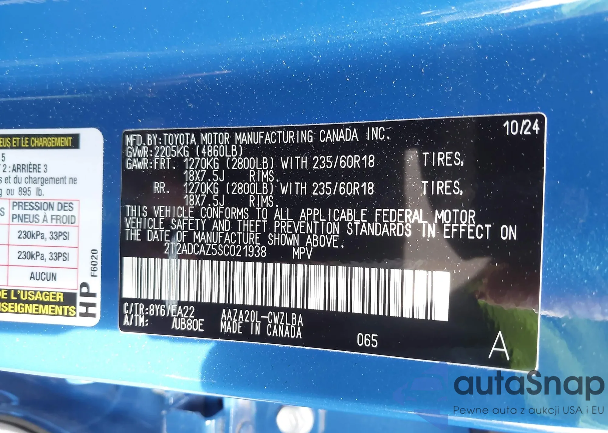 • VIN 2T2ADCAZ5SC021938