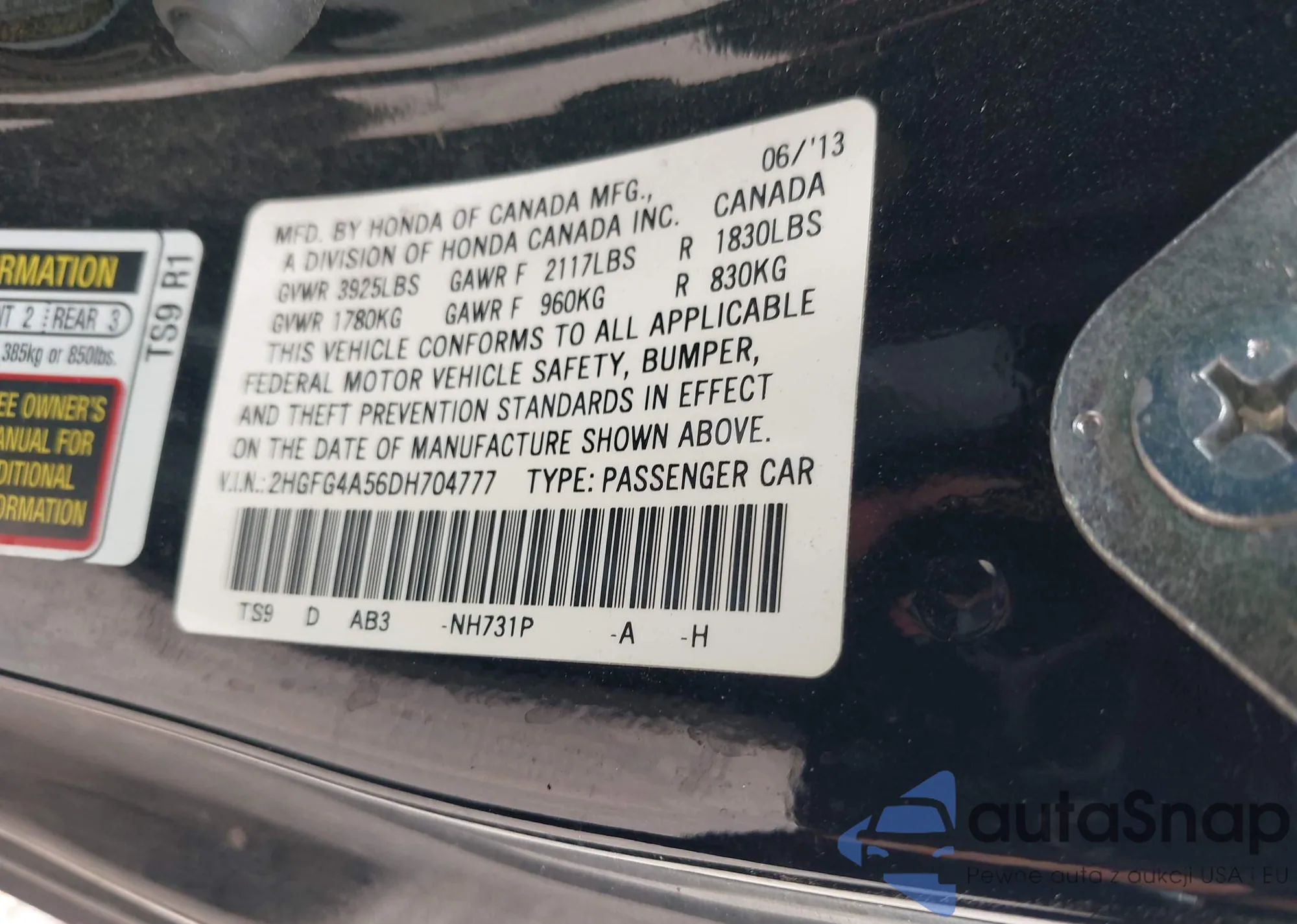 • VIN 2HGFG4A56DH704777
