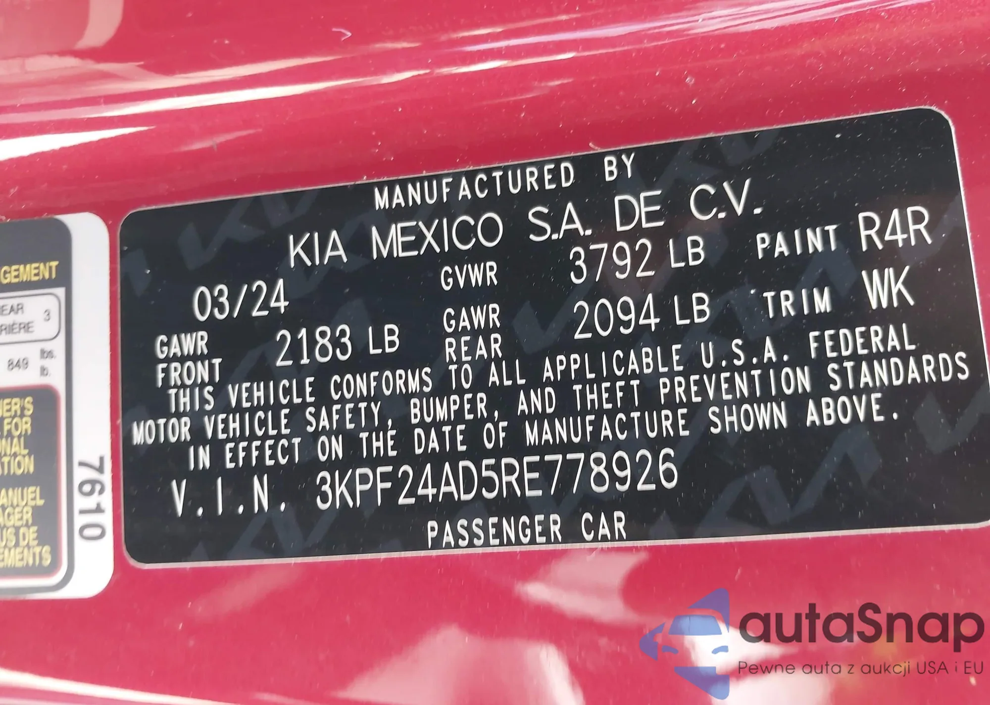 LOT: 43225369 VIN: KNAFK4A64G5607897