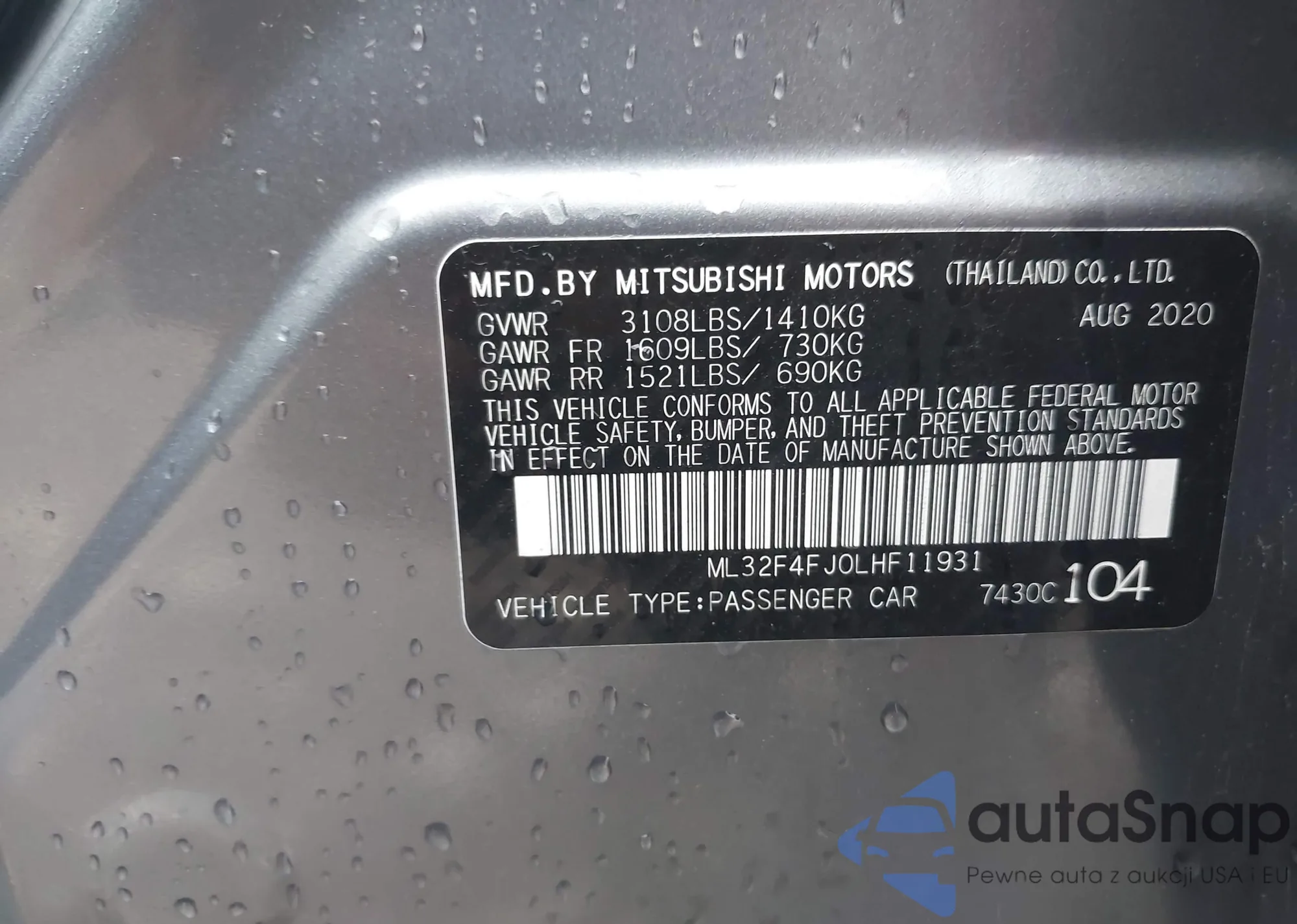 LOT: 43296667 VIN: ML32F4FJ0LHF11931