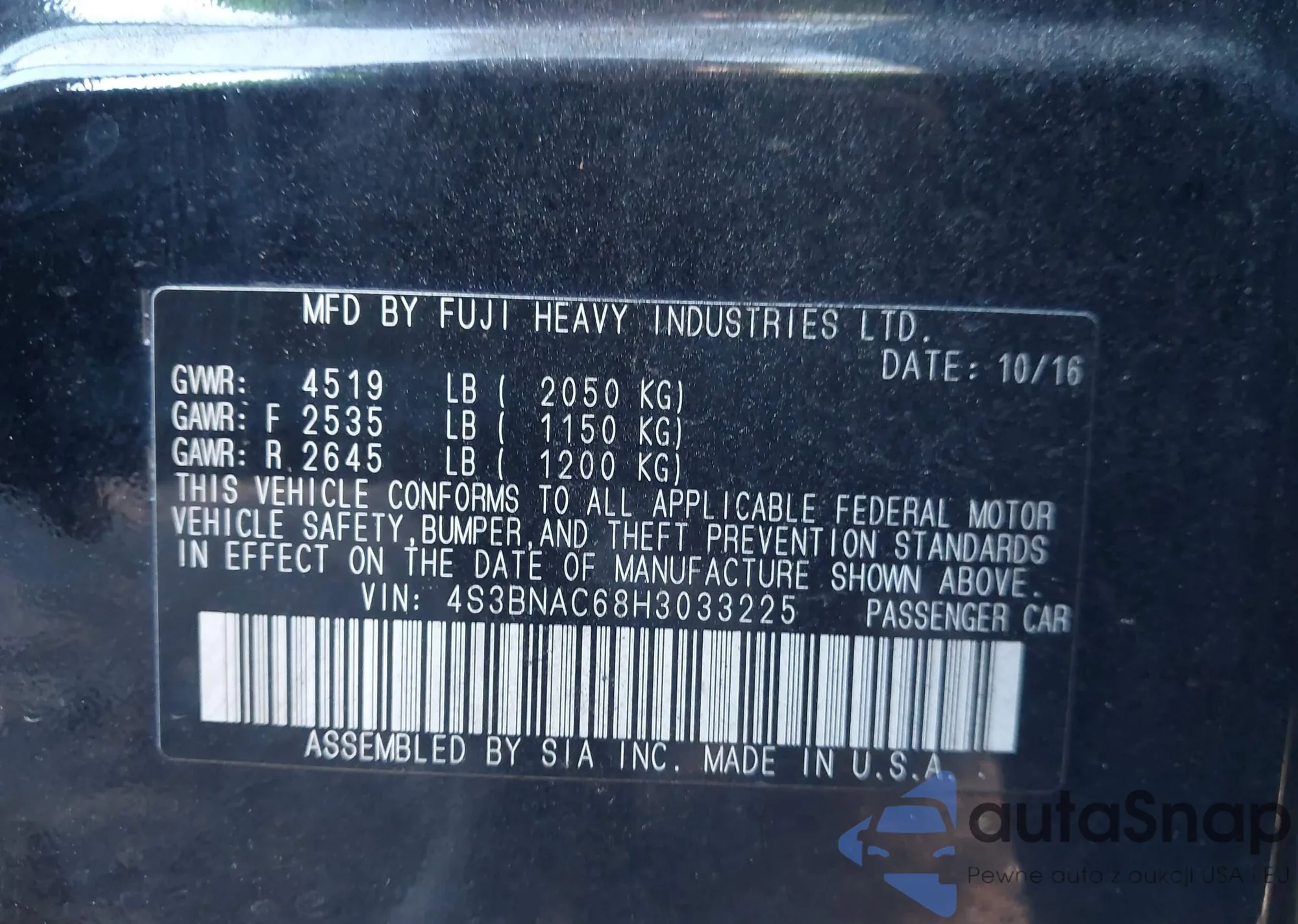 LOT: 43484917 VIN: 4S3BNAC68H3033225