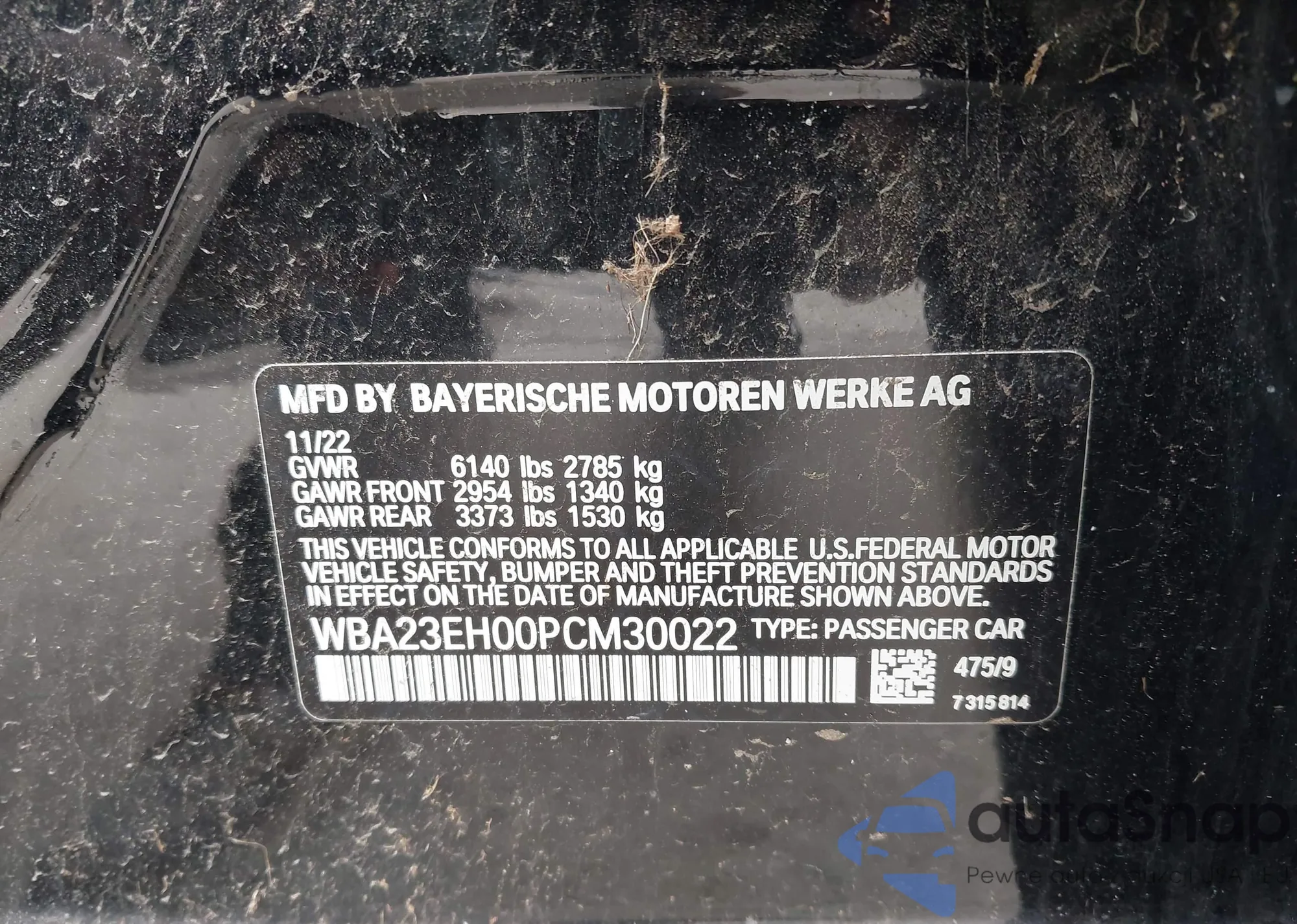 LOT: 43602486 VIN: WBA23EH00PCM30022
