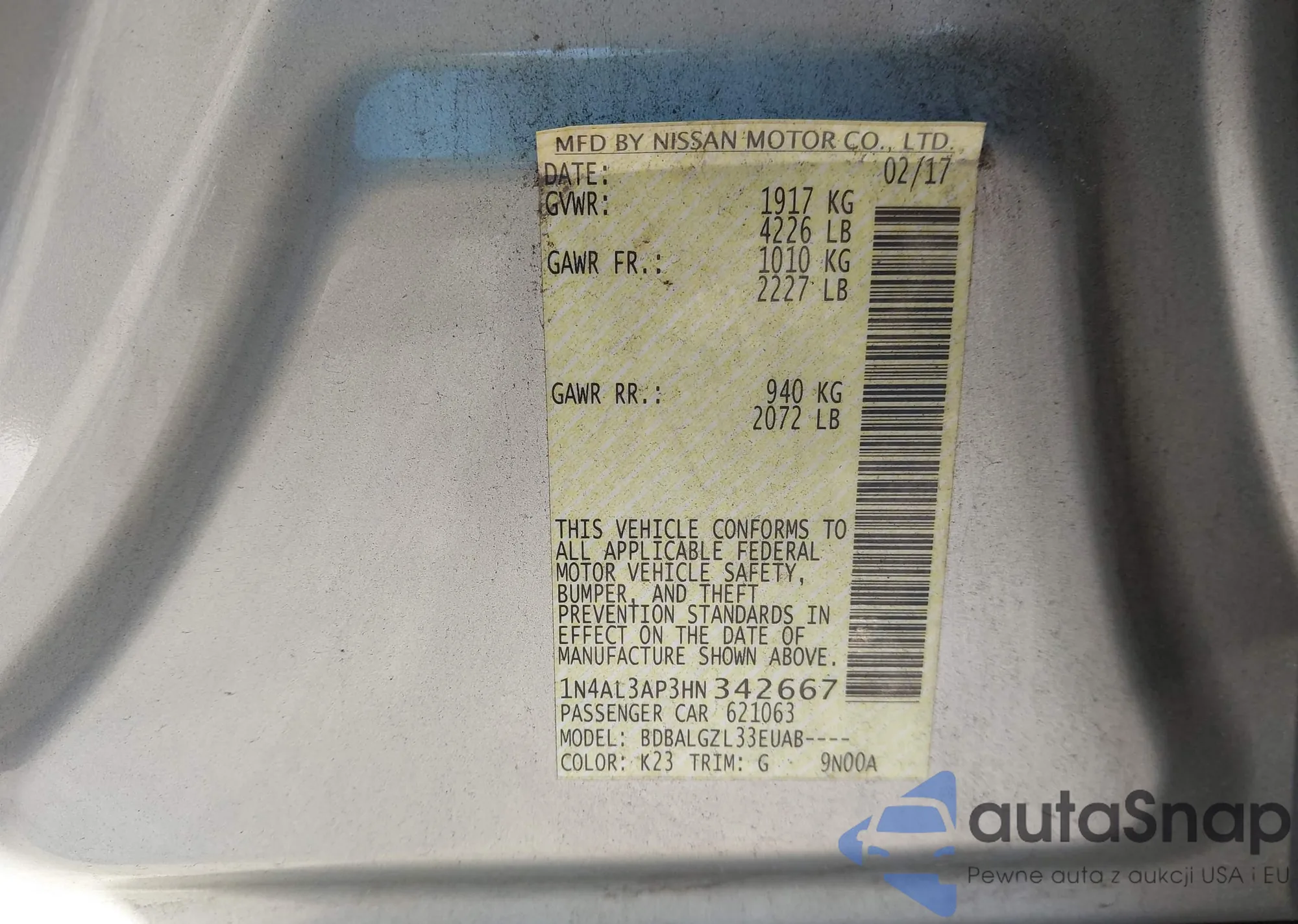LOT: 43602558 VIN: 1N4AL3AP3HN342667