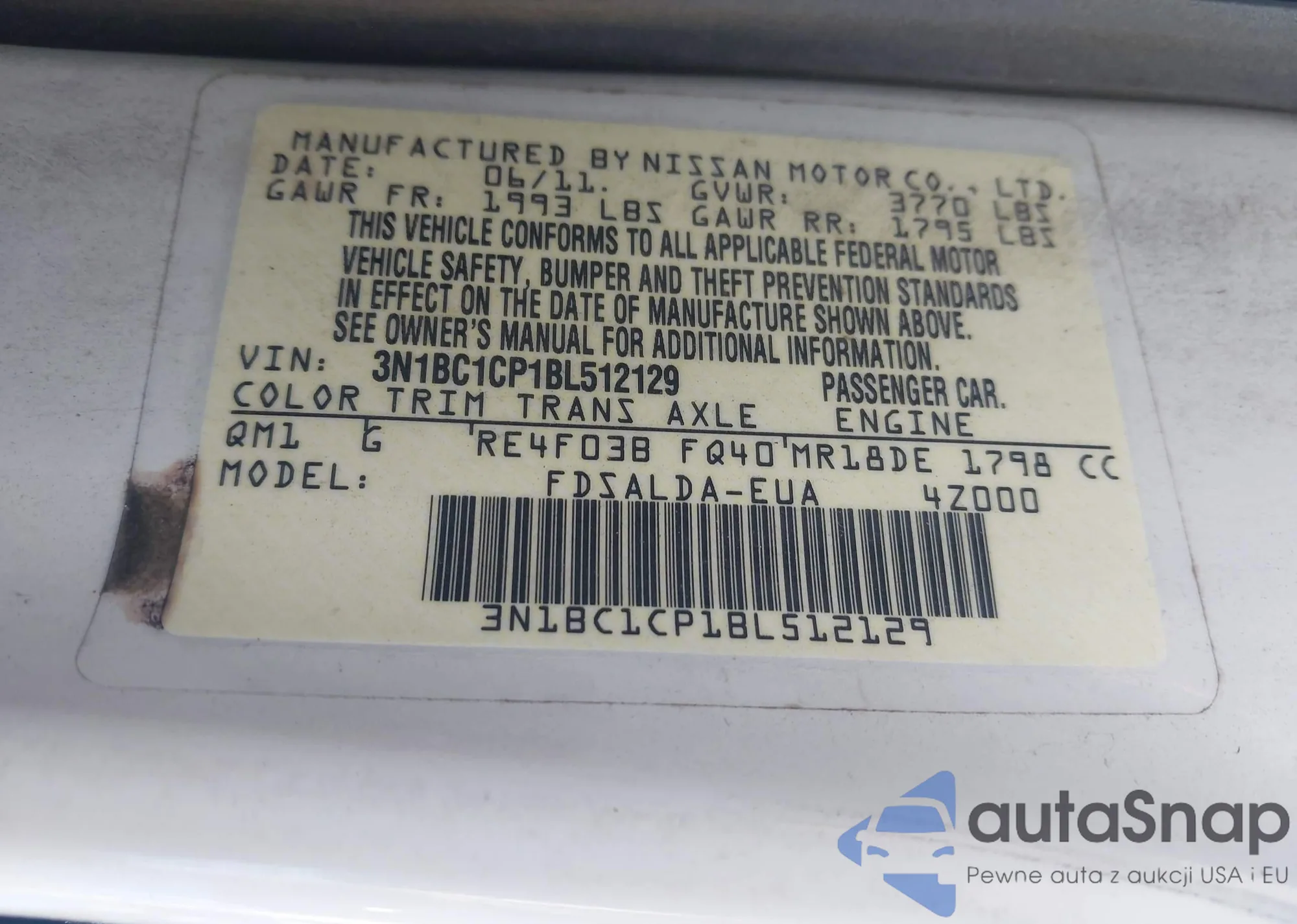 • VIN 3N1BC1CP1BL512129