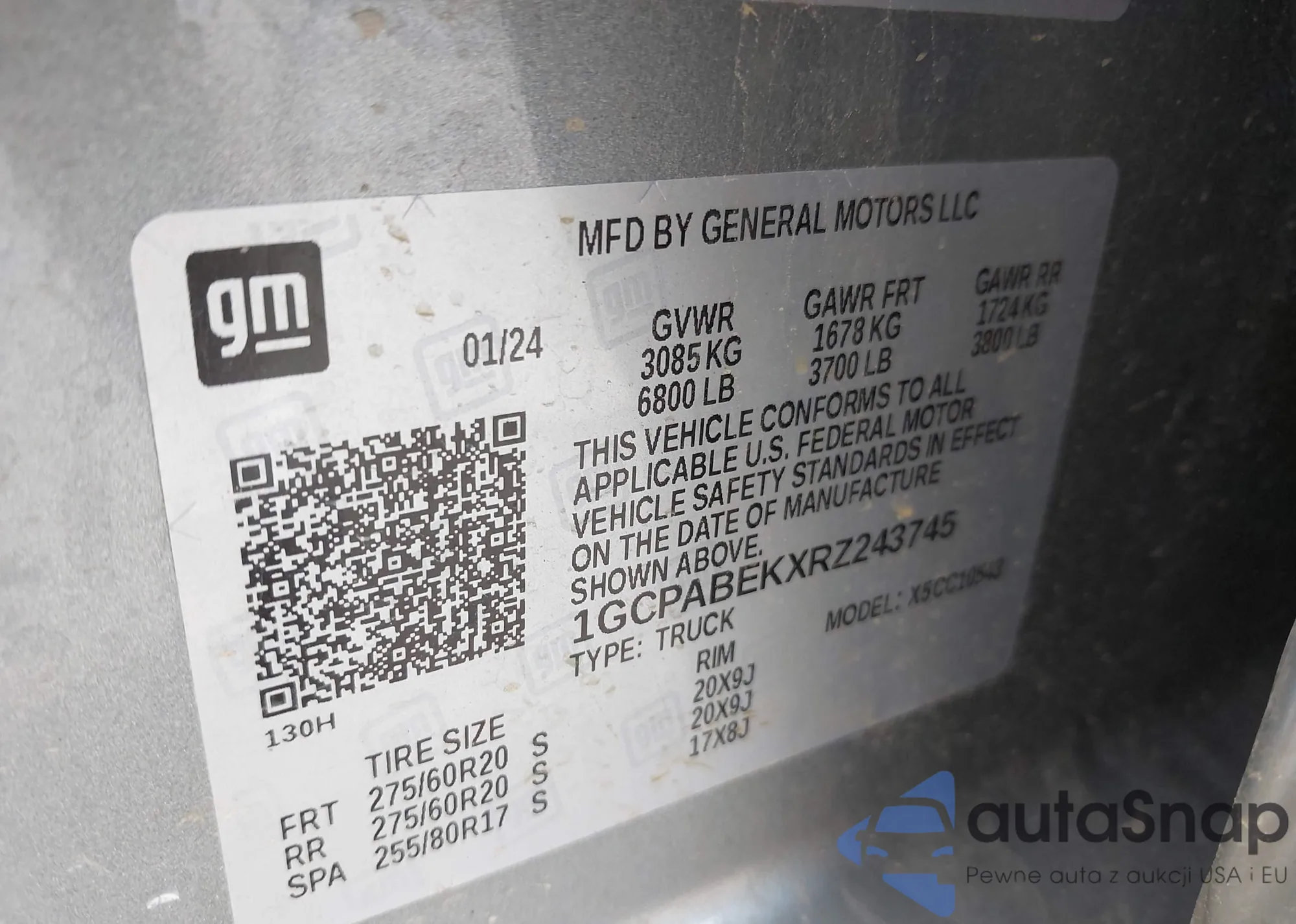 • VIN 1GCPABEKXRZ243745
