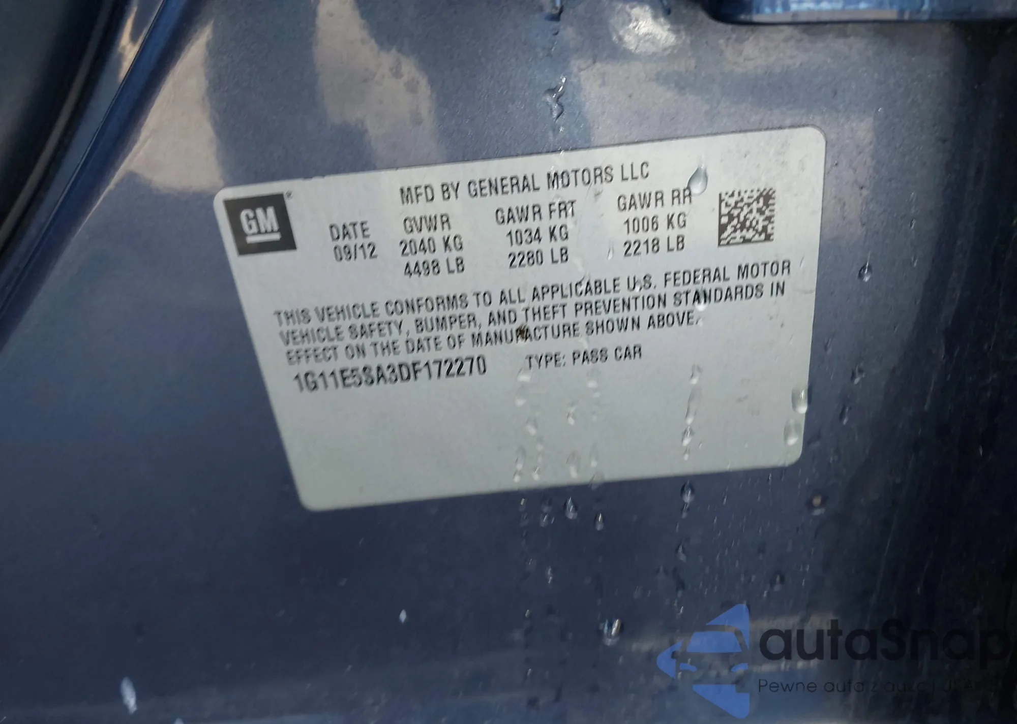 LOT: 43468570 VIN: 2G61M5S35H9184448