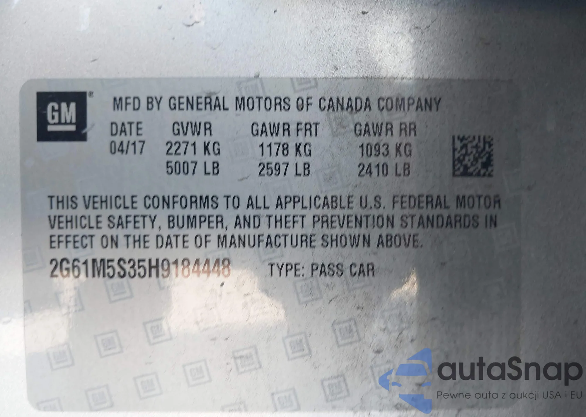 • VIN 2G61M5S35H9184448