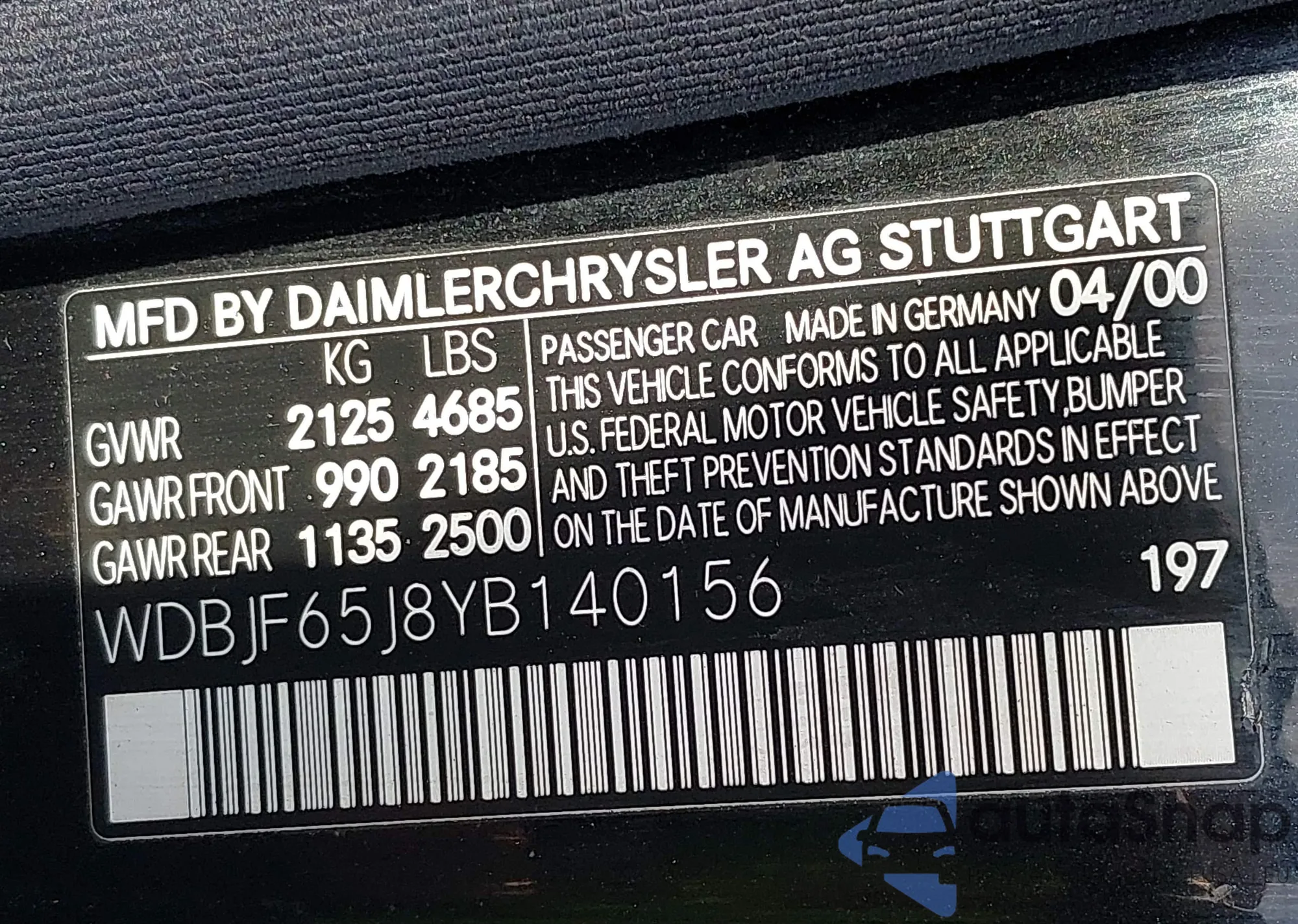 LOT: 43509364 VIN: WDBJF65J8YB140156