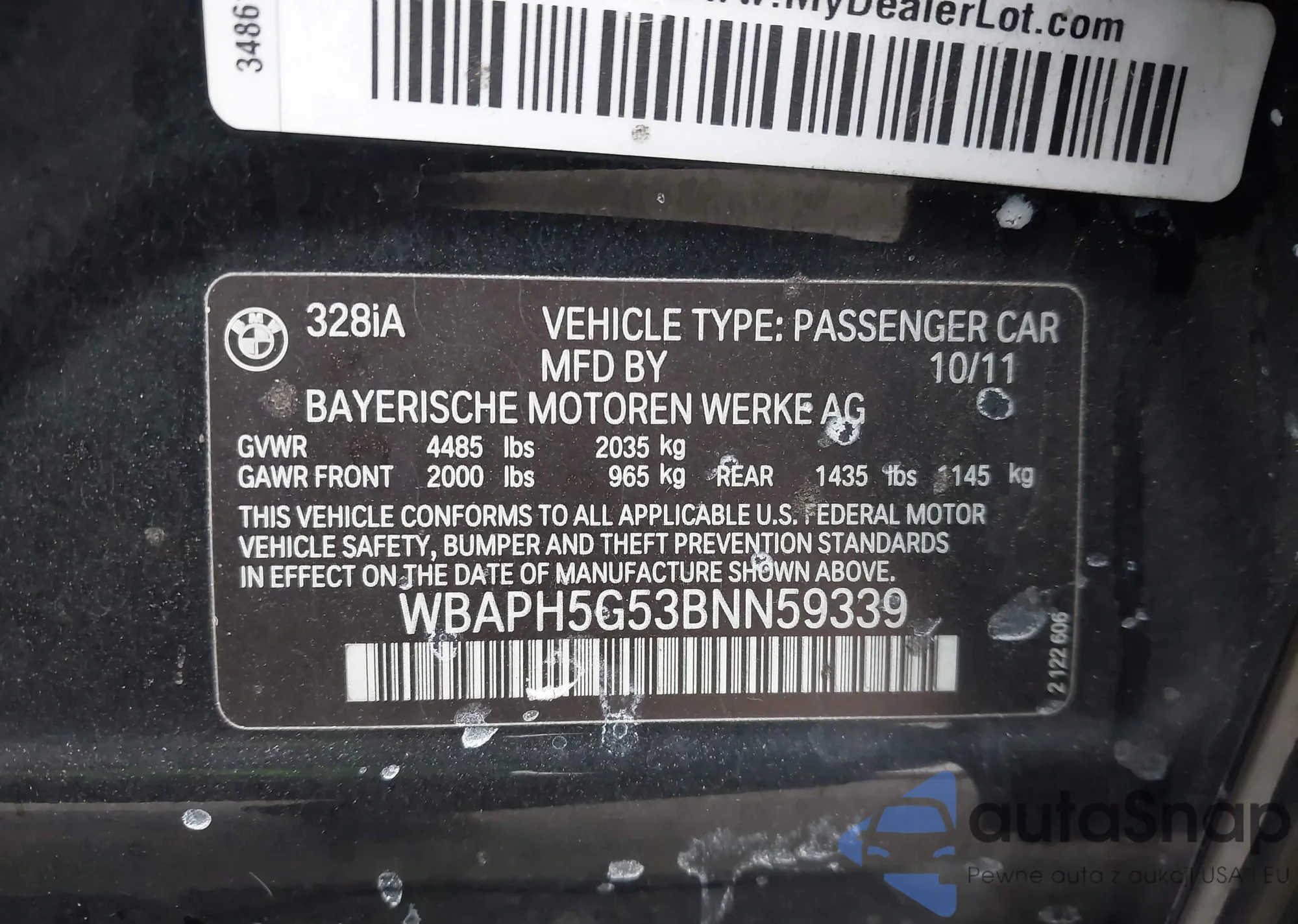 LOT: 43377848 VIN: WBAPH5G53BNN59339