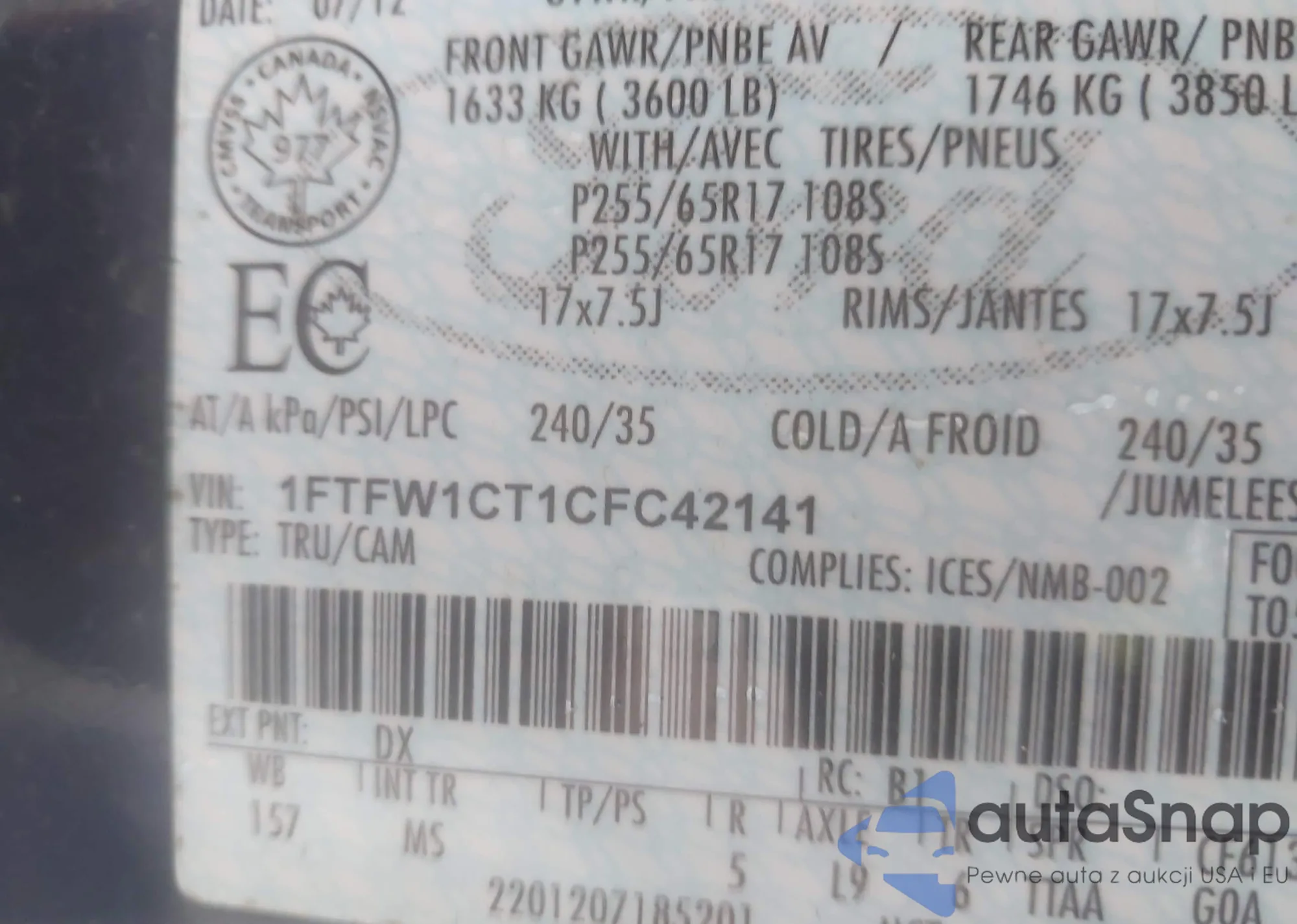 • VIN 1FTFW1CT1CFC42141