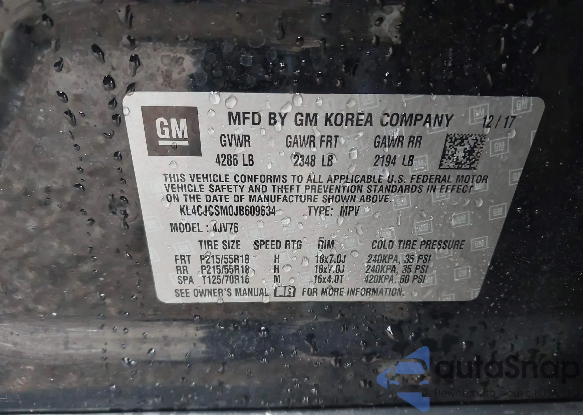 • VIN KL4CJCSM0JB609634