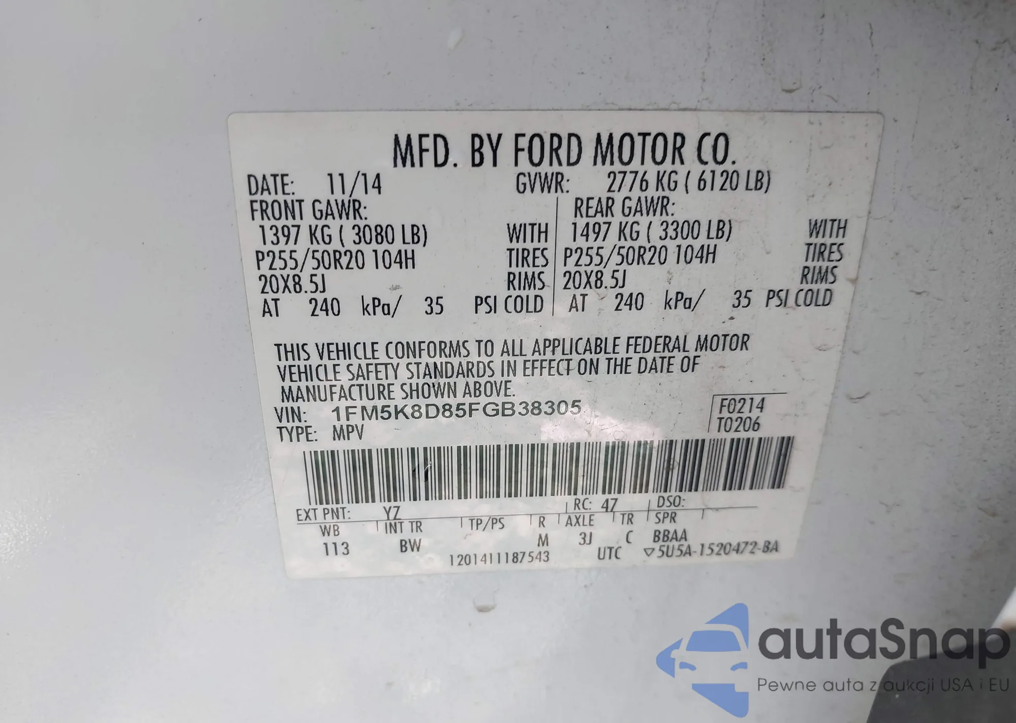 • VIN 1FM5K8D85FGB38305