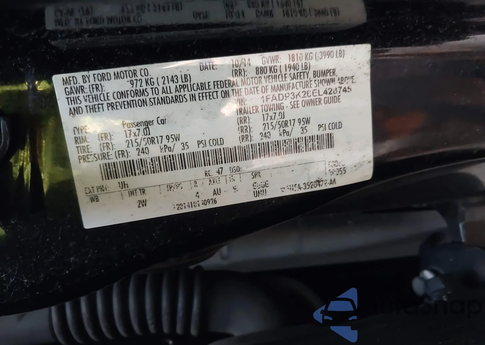 LOT: 43583225 VIN: 1FADP3K26EL428745