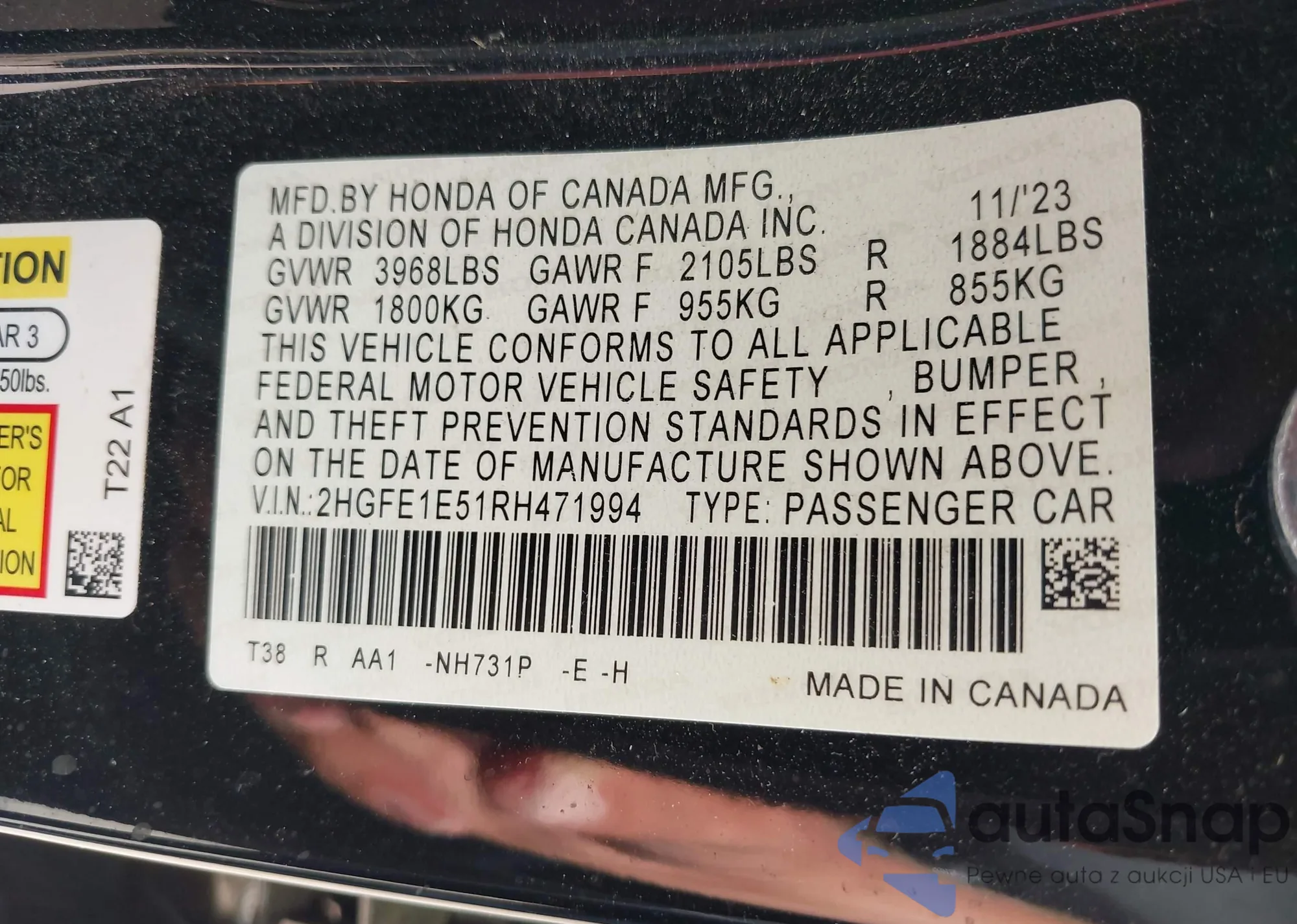 • VIN 2HGFE1E51RH471994