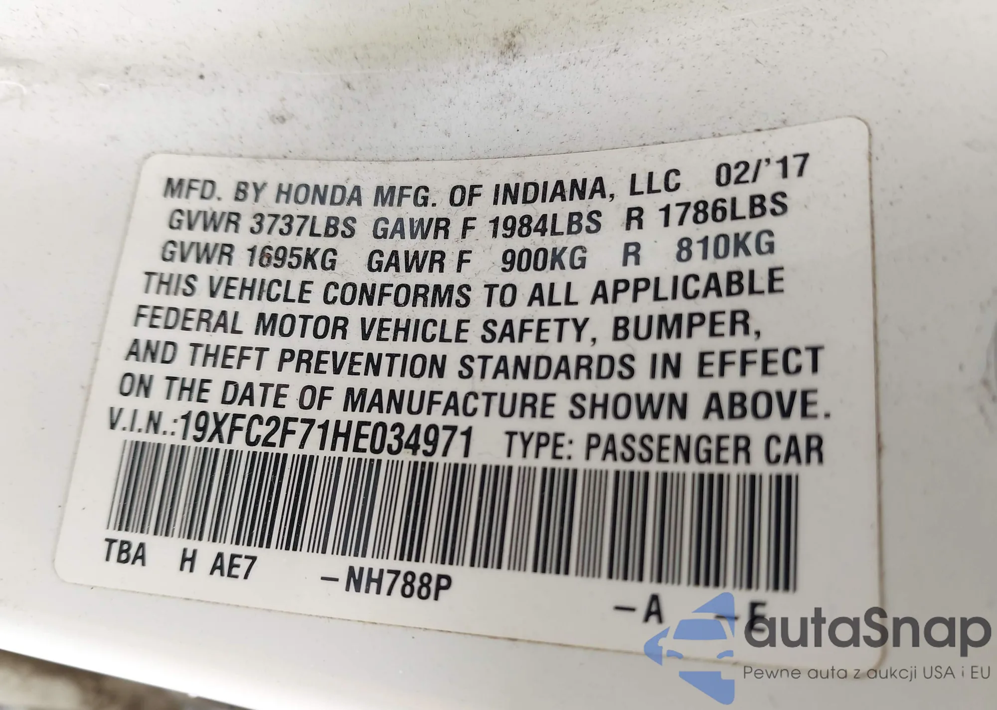 • VIN 19XFC2F71HE034971