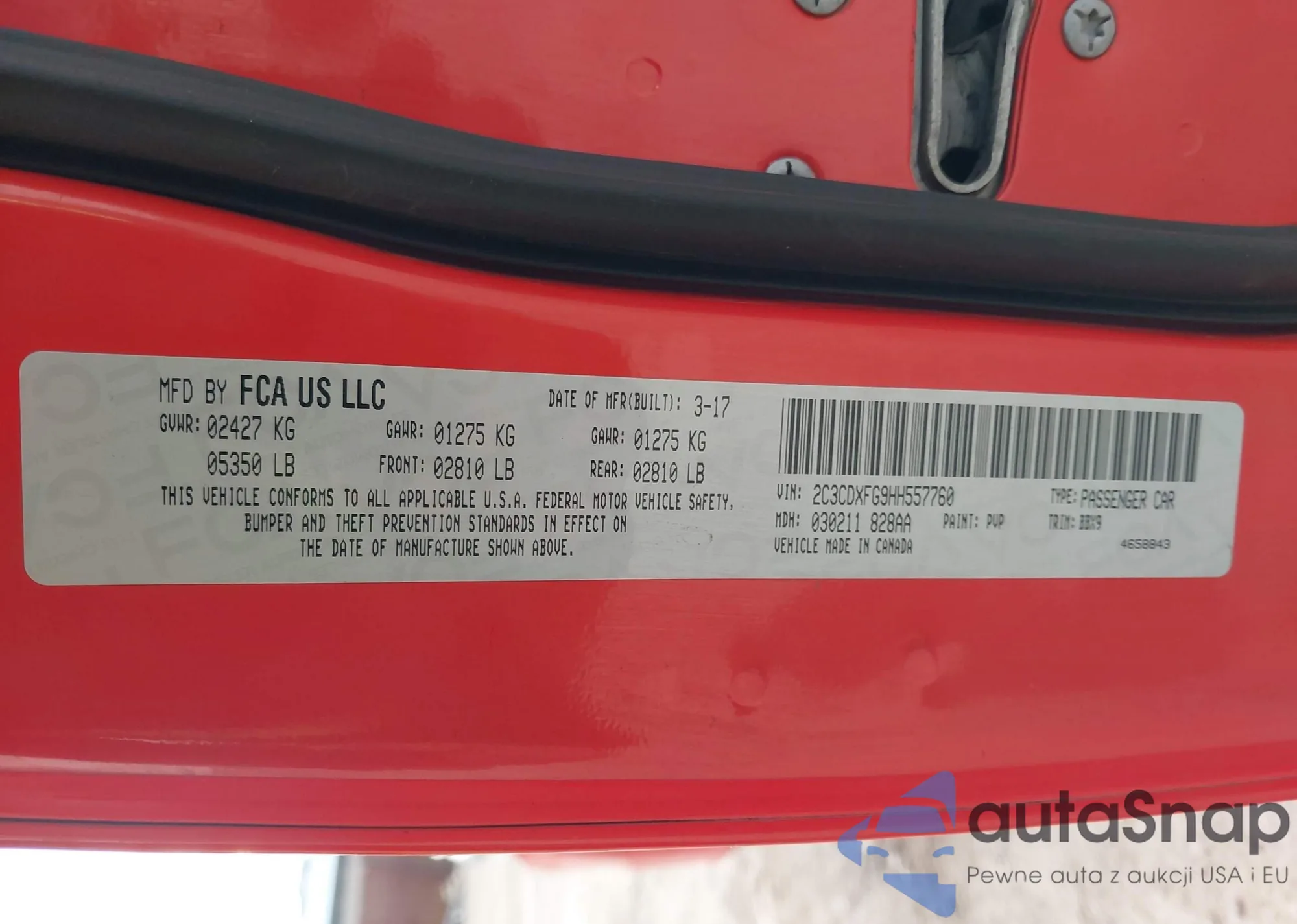 • VIN 2C3CDXFG9HH557760