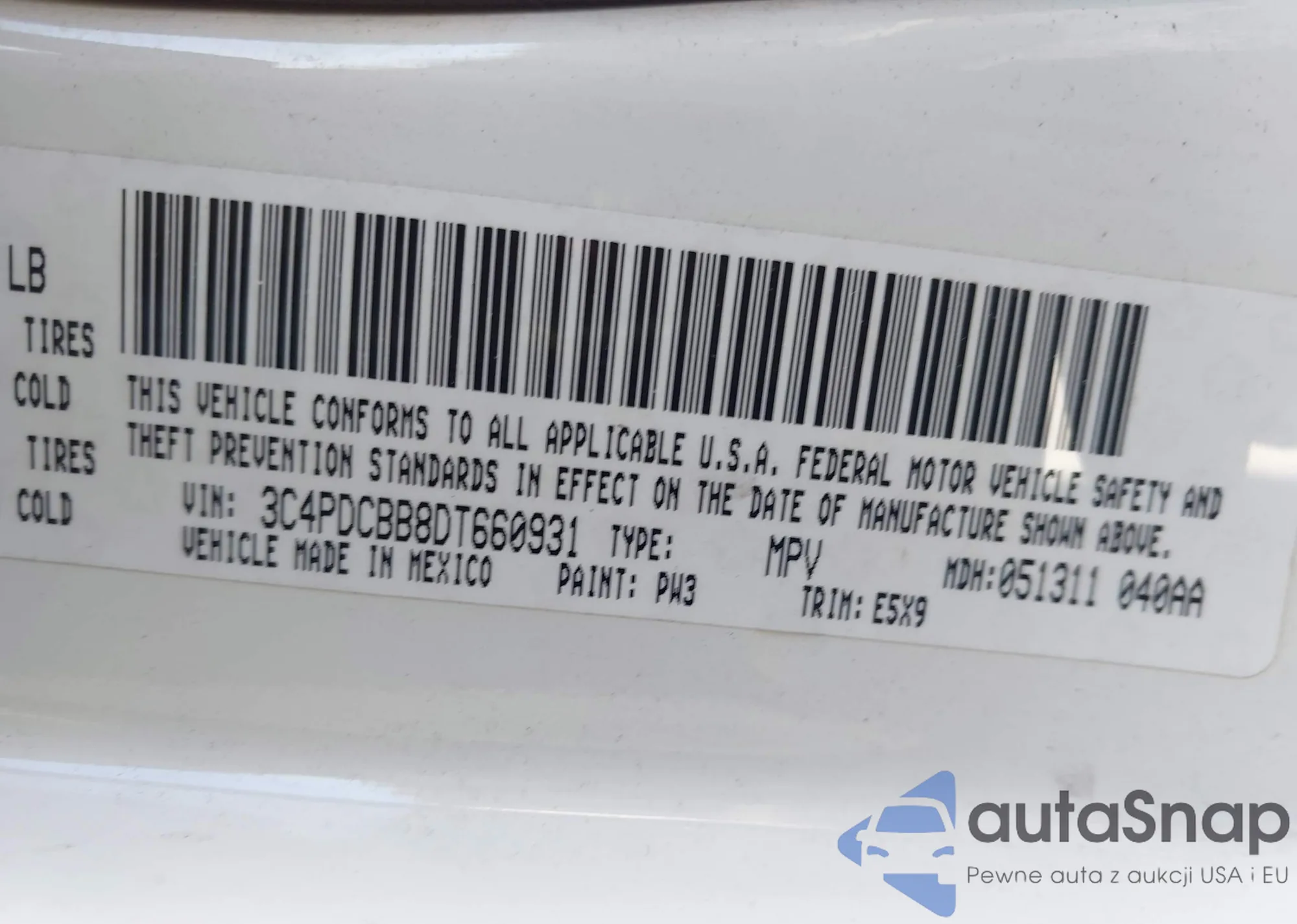 • VIN 3C4PDCBB8DT660931