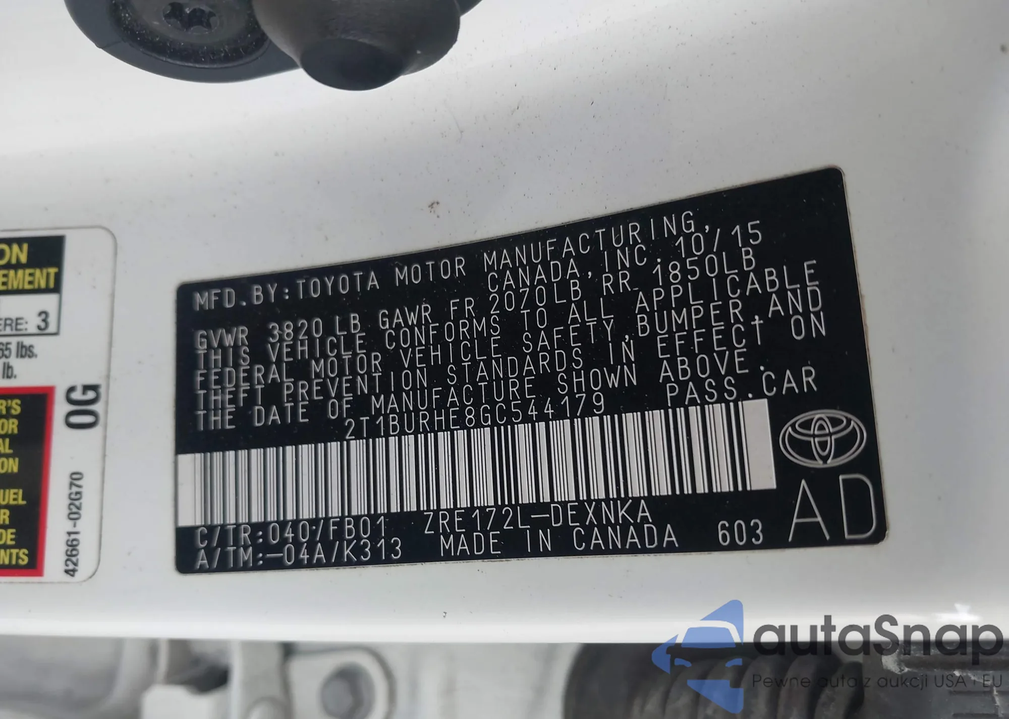 • VIN 2T1BURHE8GC544179