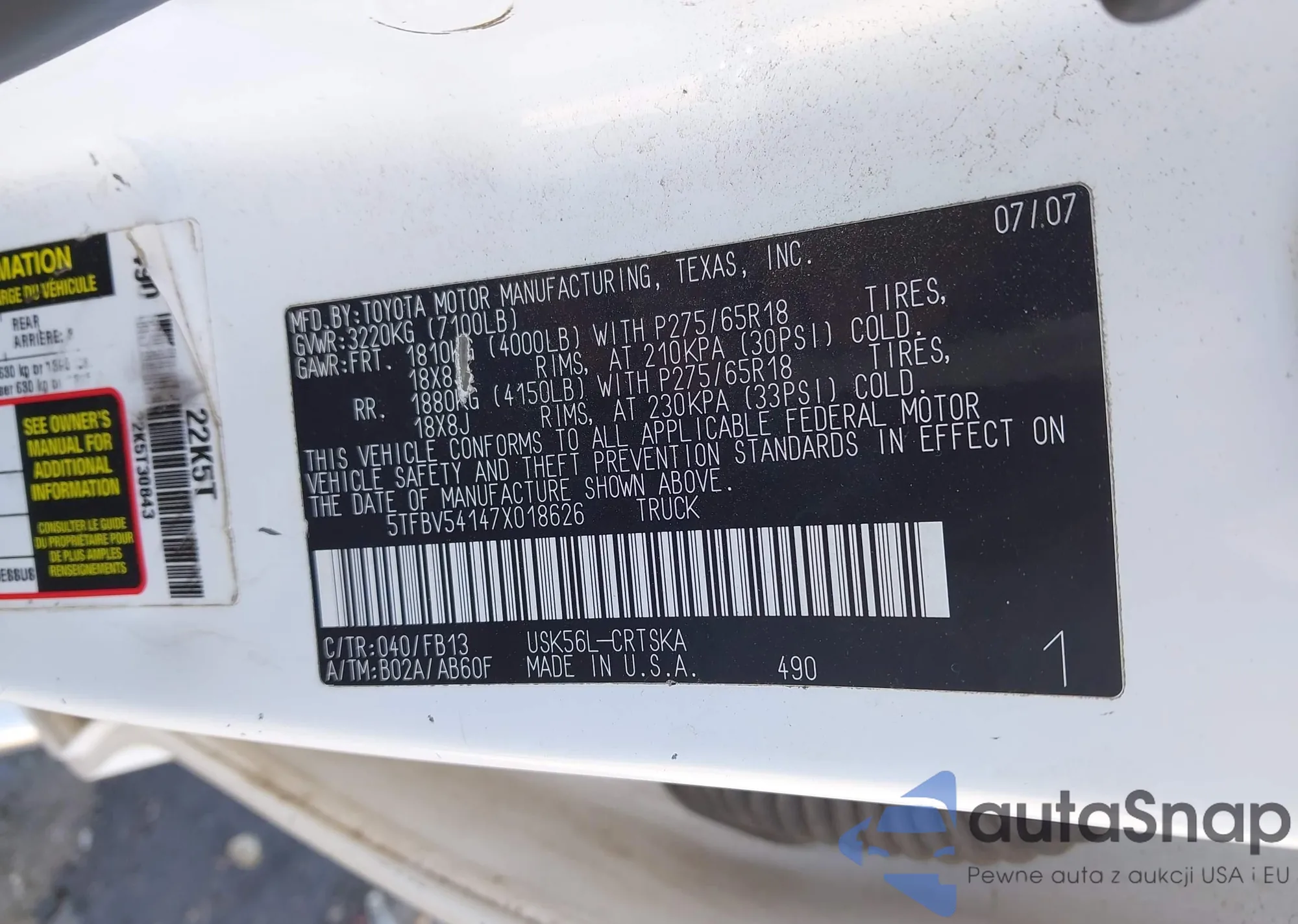 LOT: 43448955 VIN: 5TFBV54147X018626