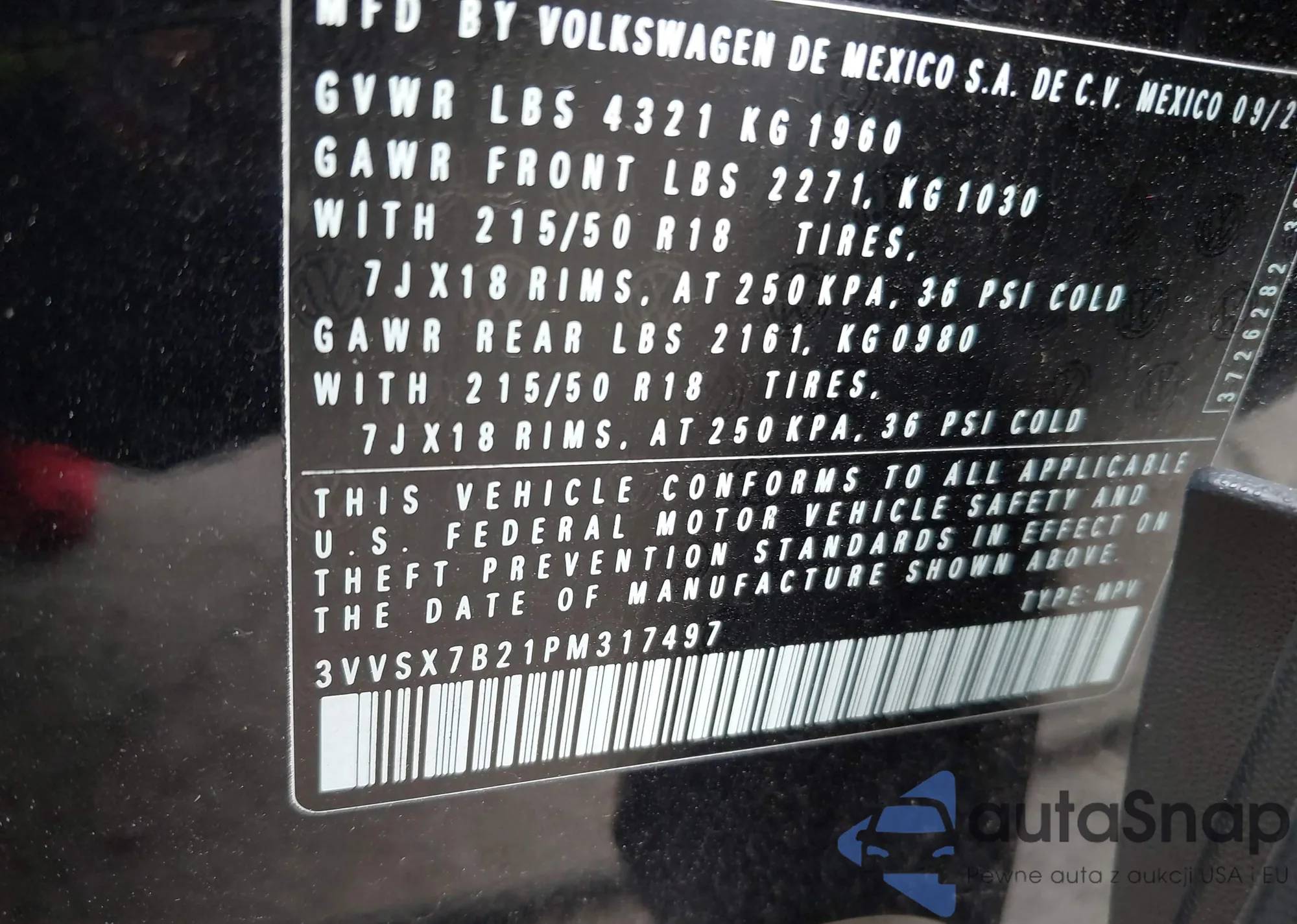 • VIN 3VVSX7B21PM317497