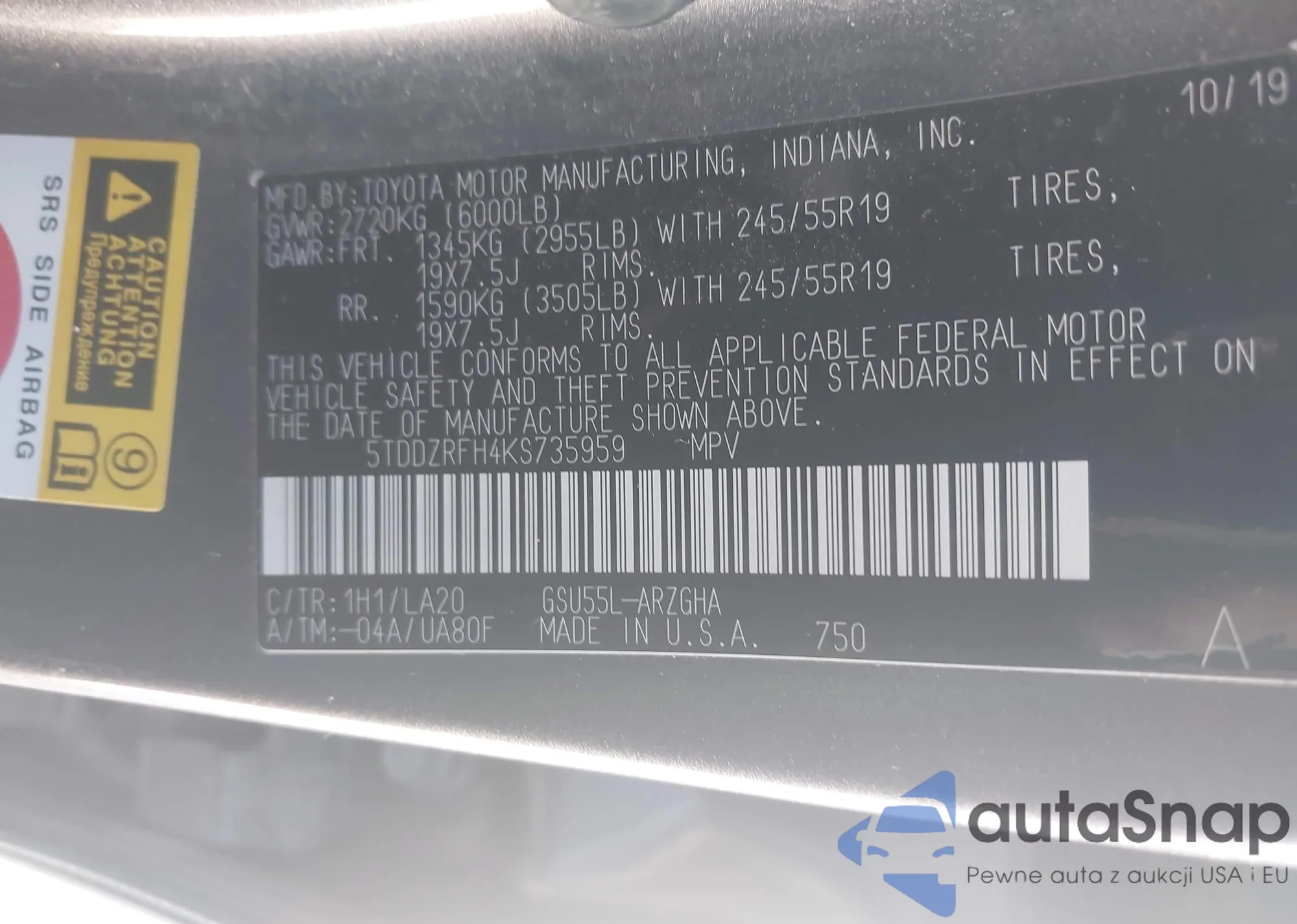 LOT: 43771958 VIN: JF2GTHMC5PH222636