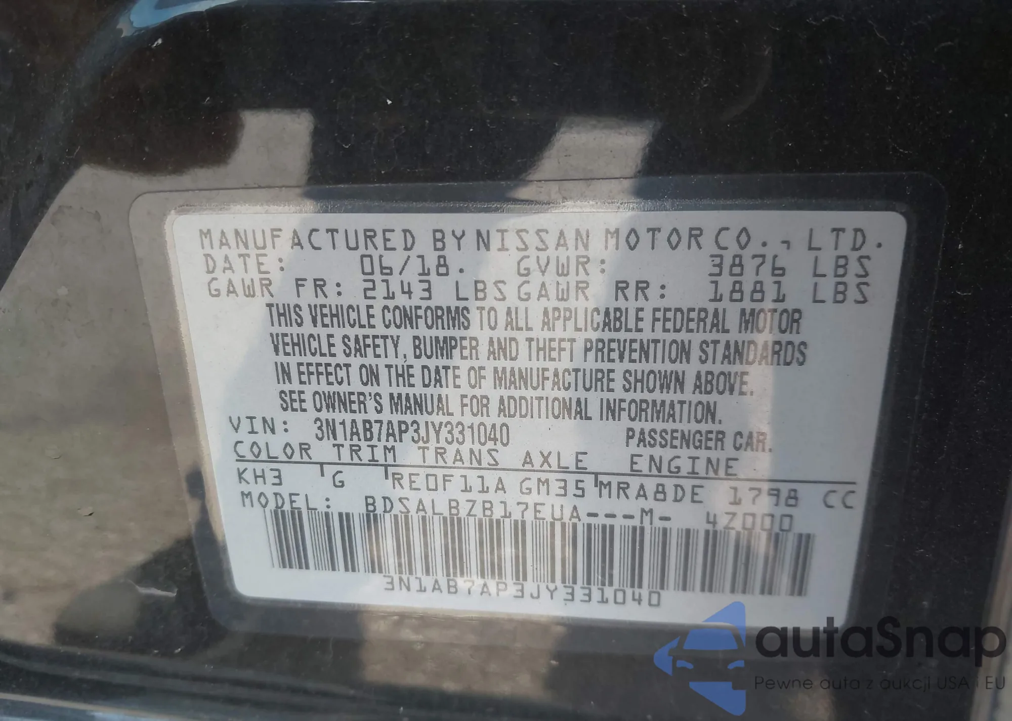 • VIN 3N1AB7AP3JY331040