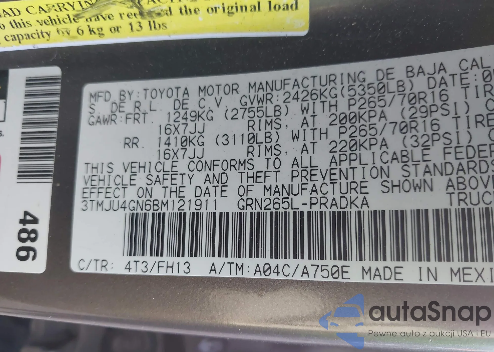 • VIN 3TMJU4GN6BM121911