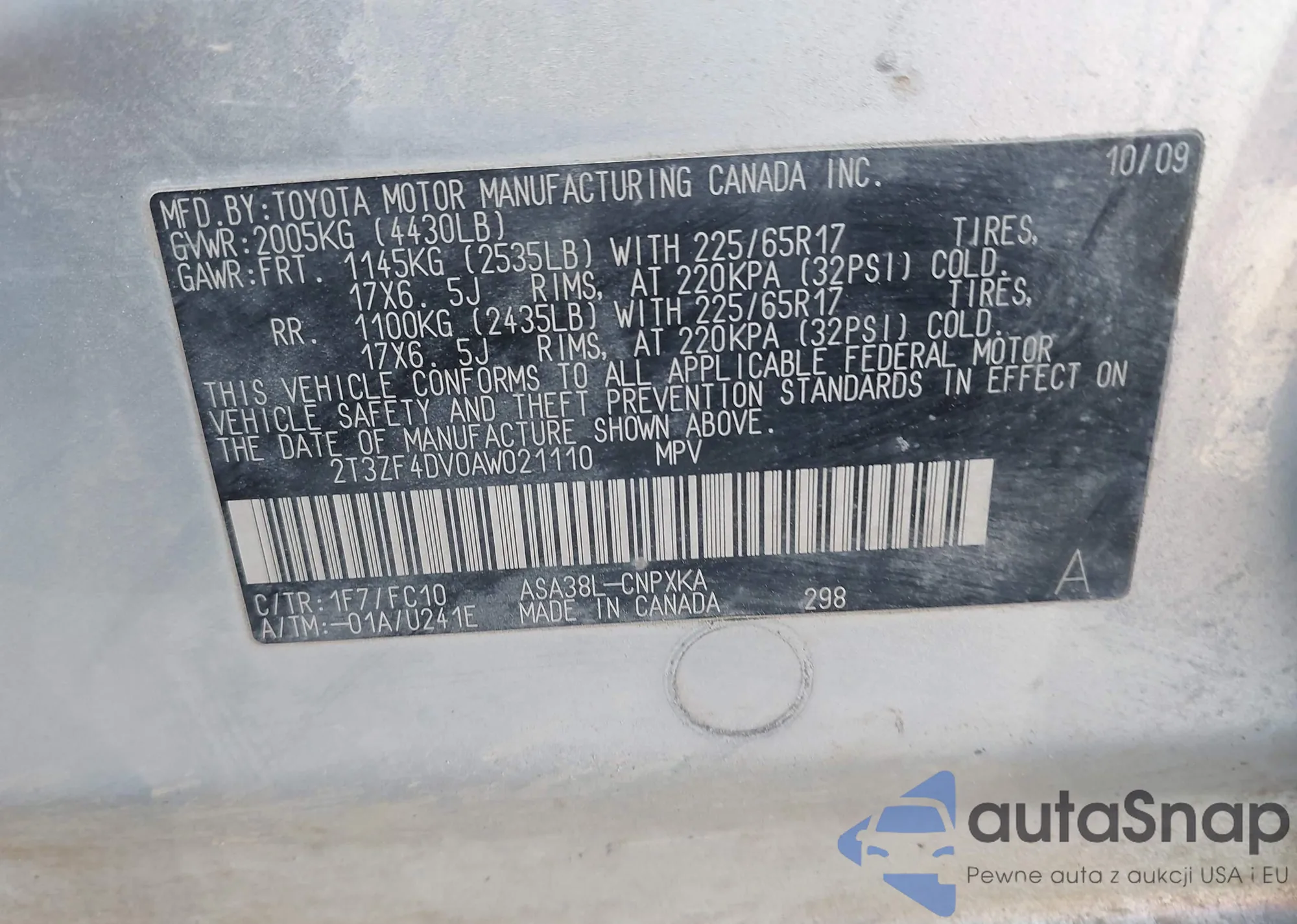• VIN 2T3A1RFV9NC257753