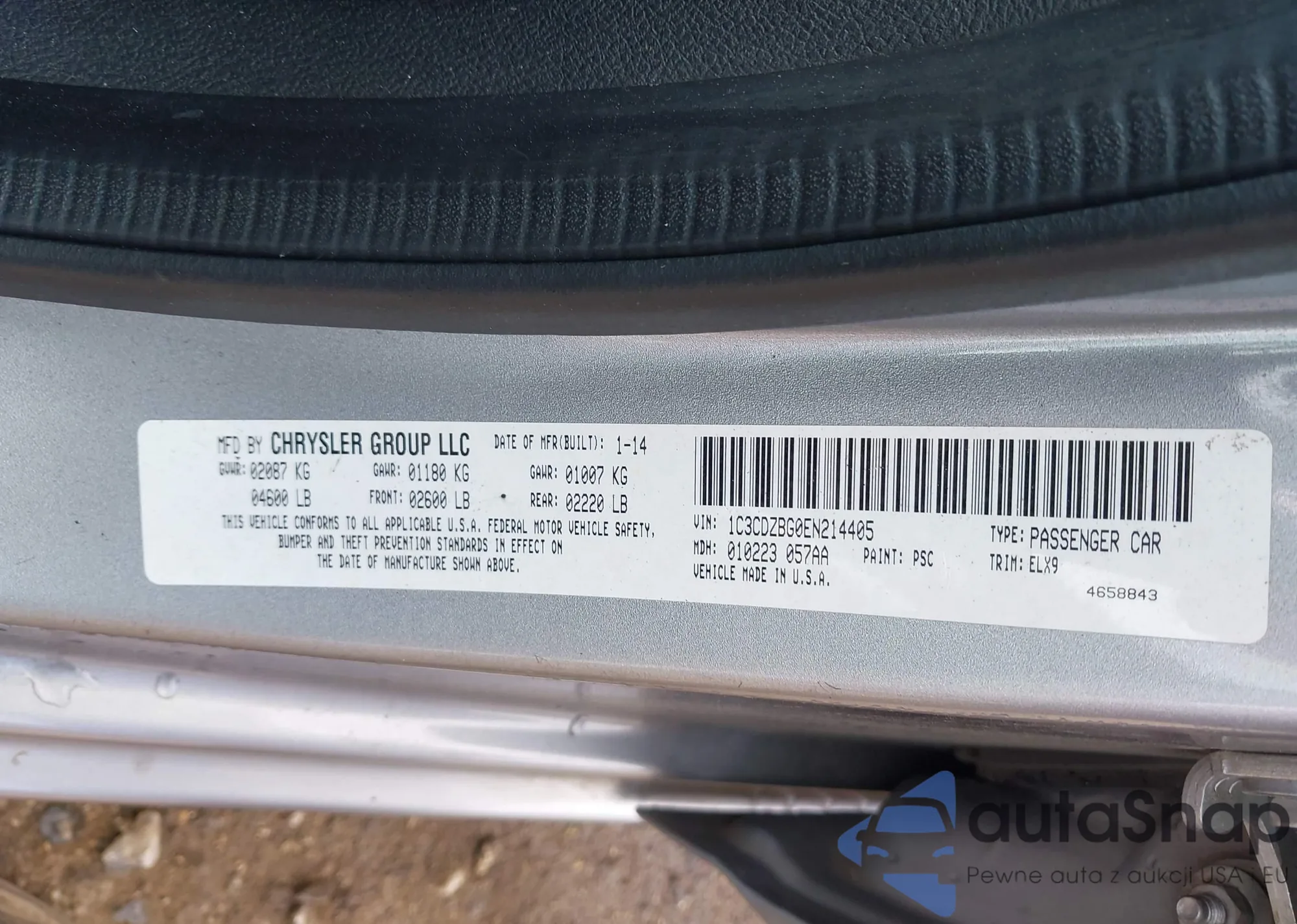 LOT: 43249735 VIN: 1C3CDZBG0EN214405