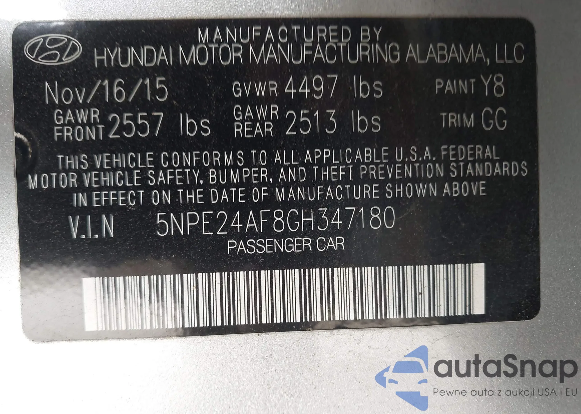 • VIN 5NPE24AF8GH347180