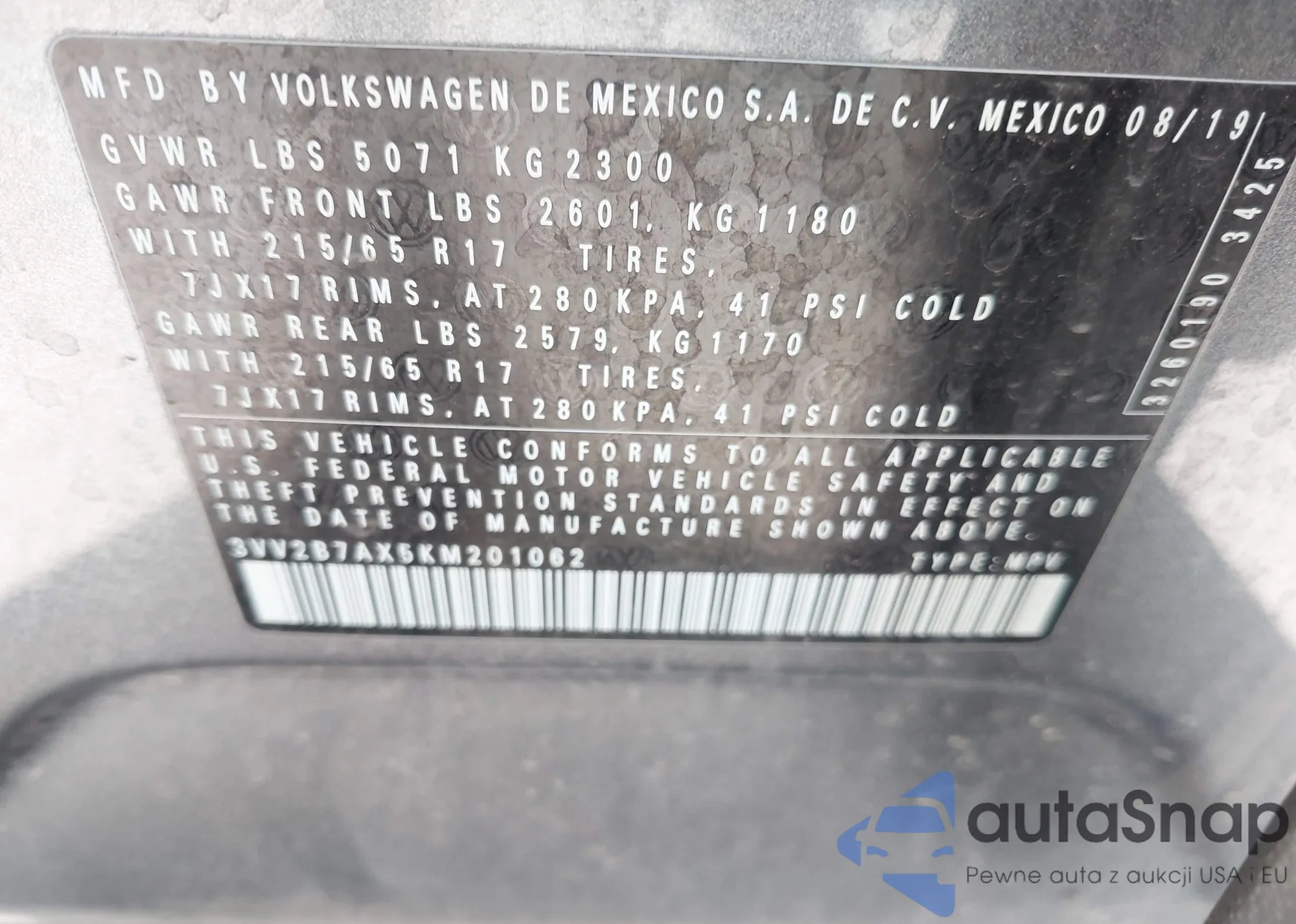 • VIN 3VV2B7AX5KM201062