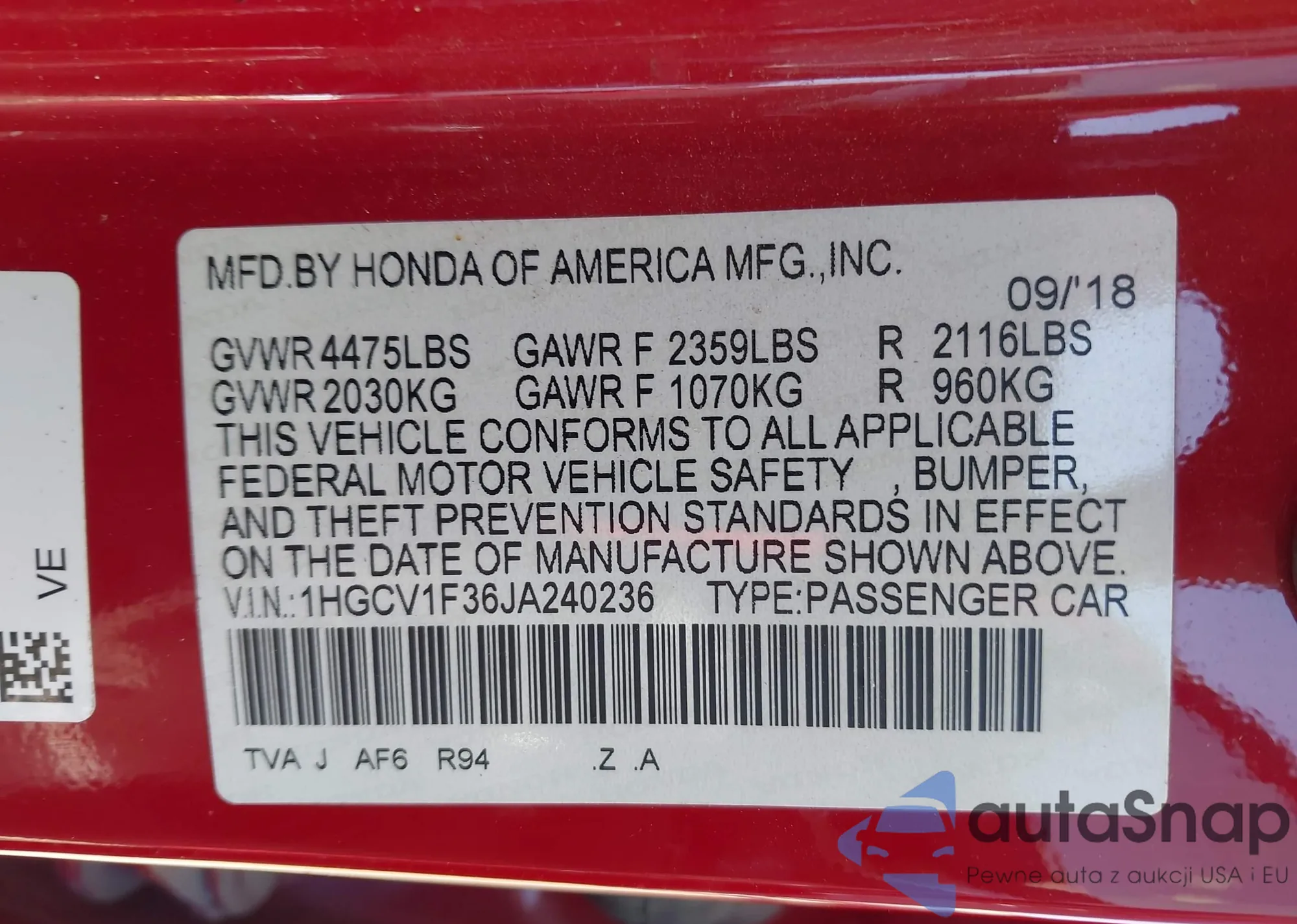 • VIN 1HGCV1F3XKA165610