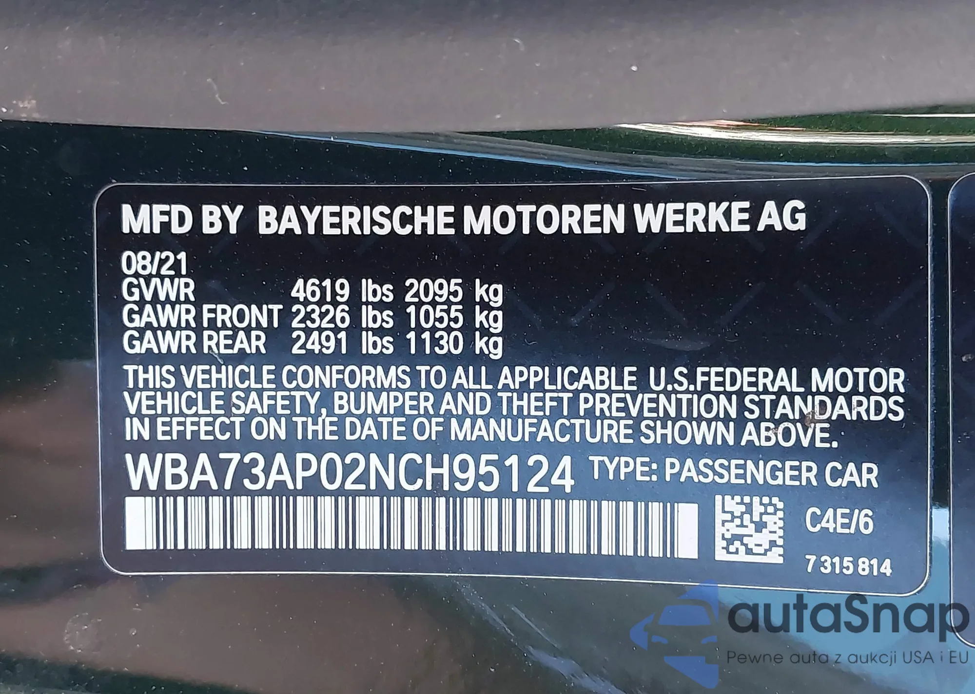 • VIN WBA73AP02NCH95124