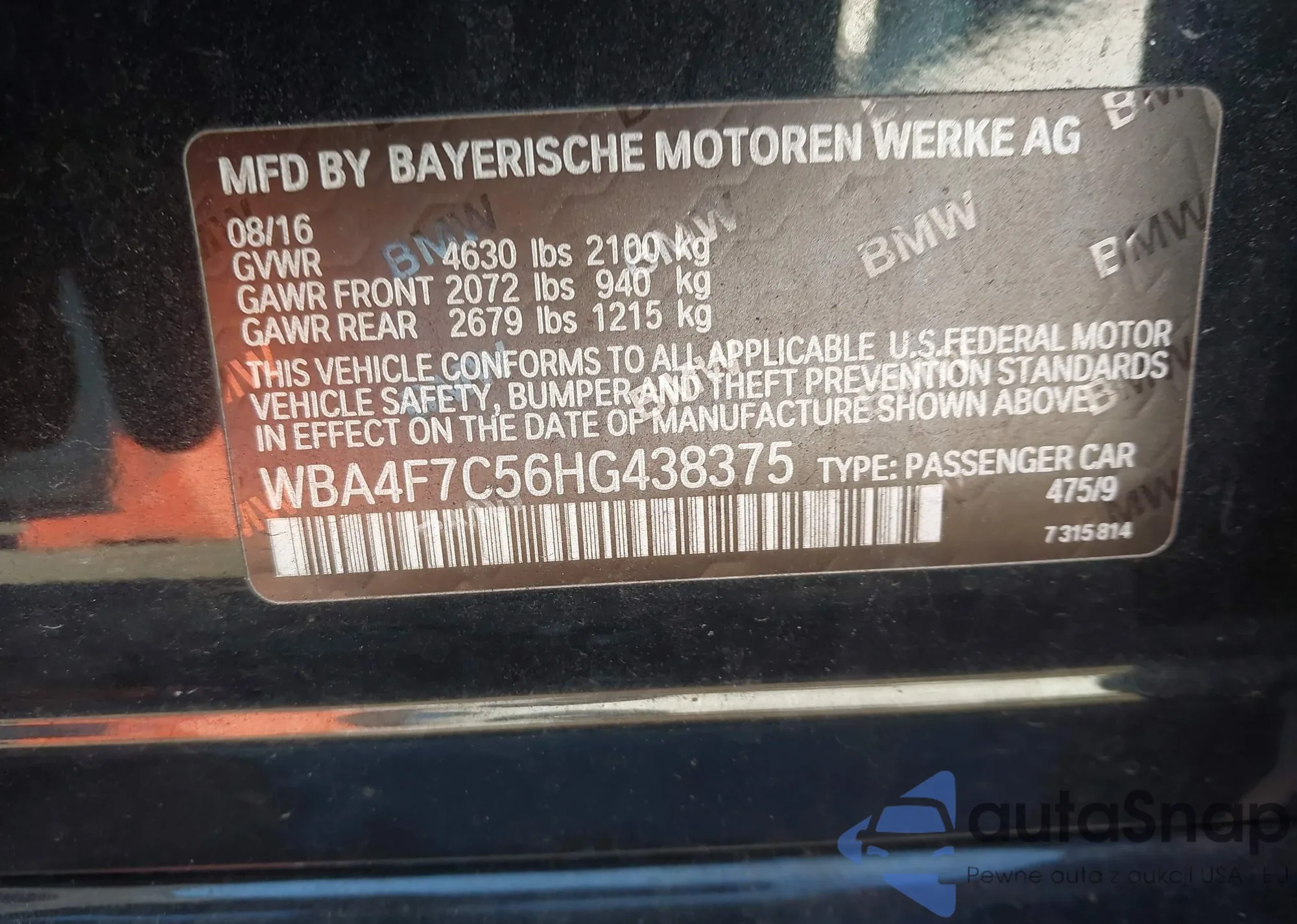 LOT: 43447463 VIN: WBA4J1C50JBG76157