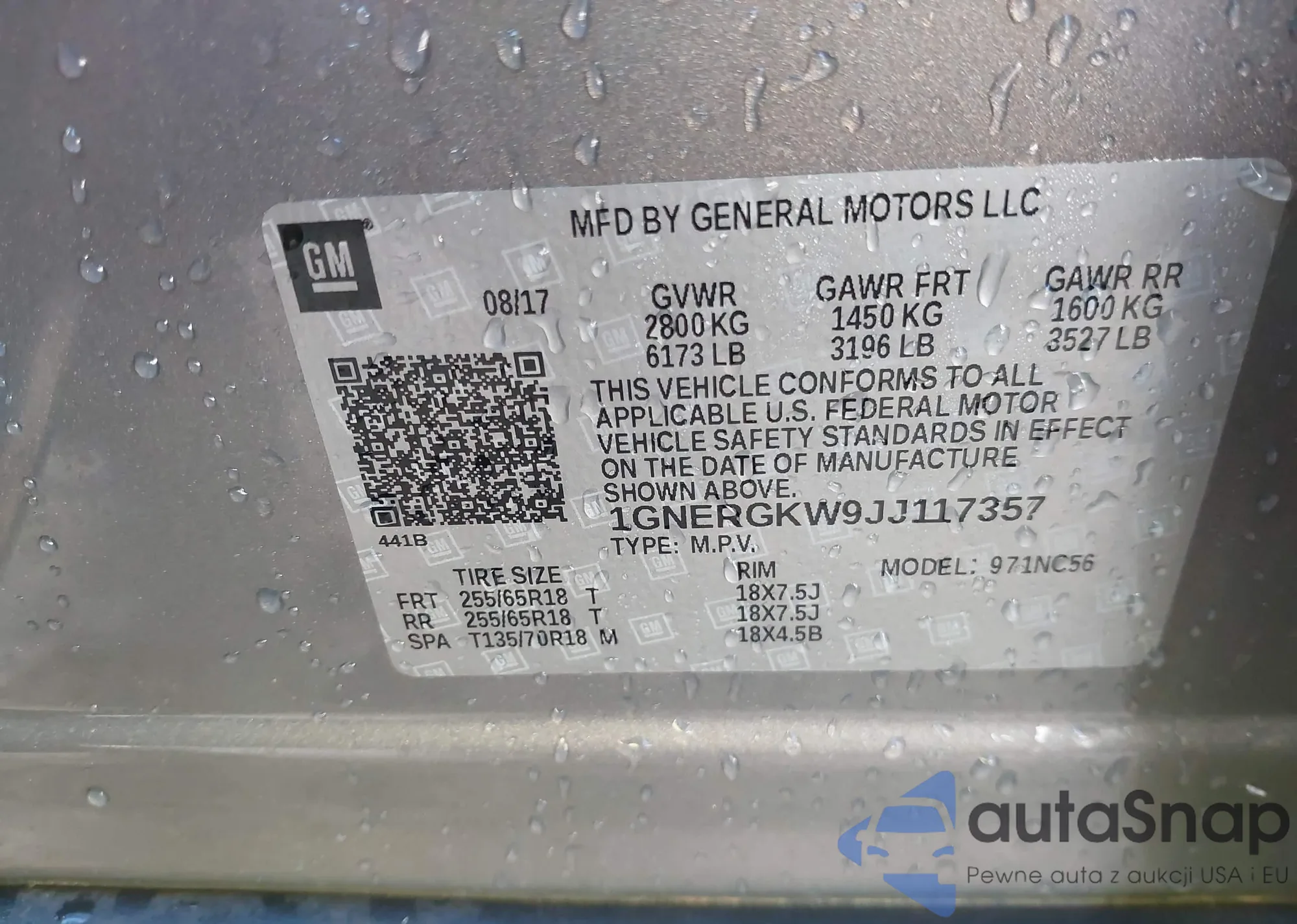 LOT: 43496773 VIN: 1GNERGKW9JJ117357