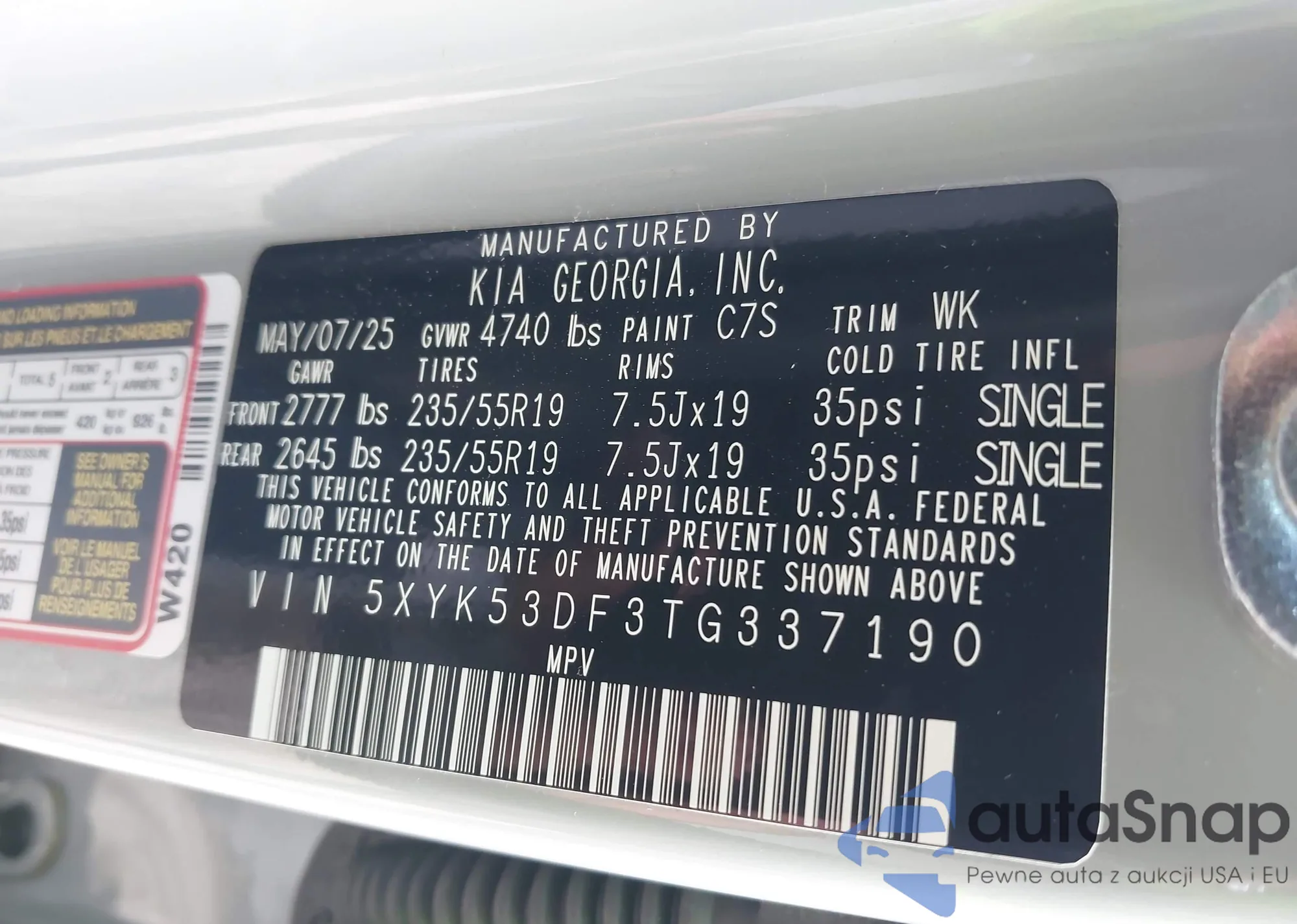 • VIN 5XYK53DF3TG337190