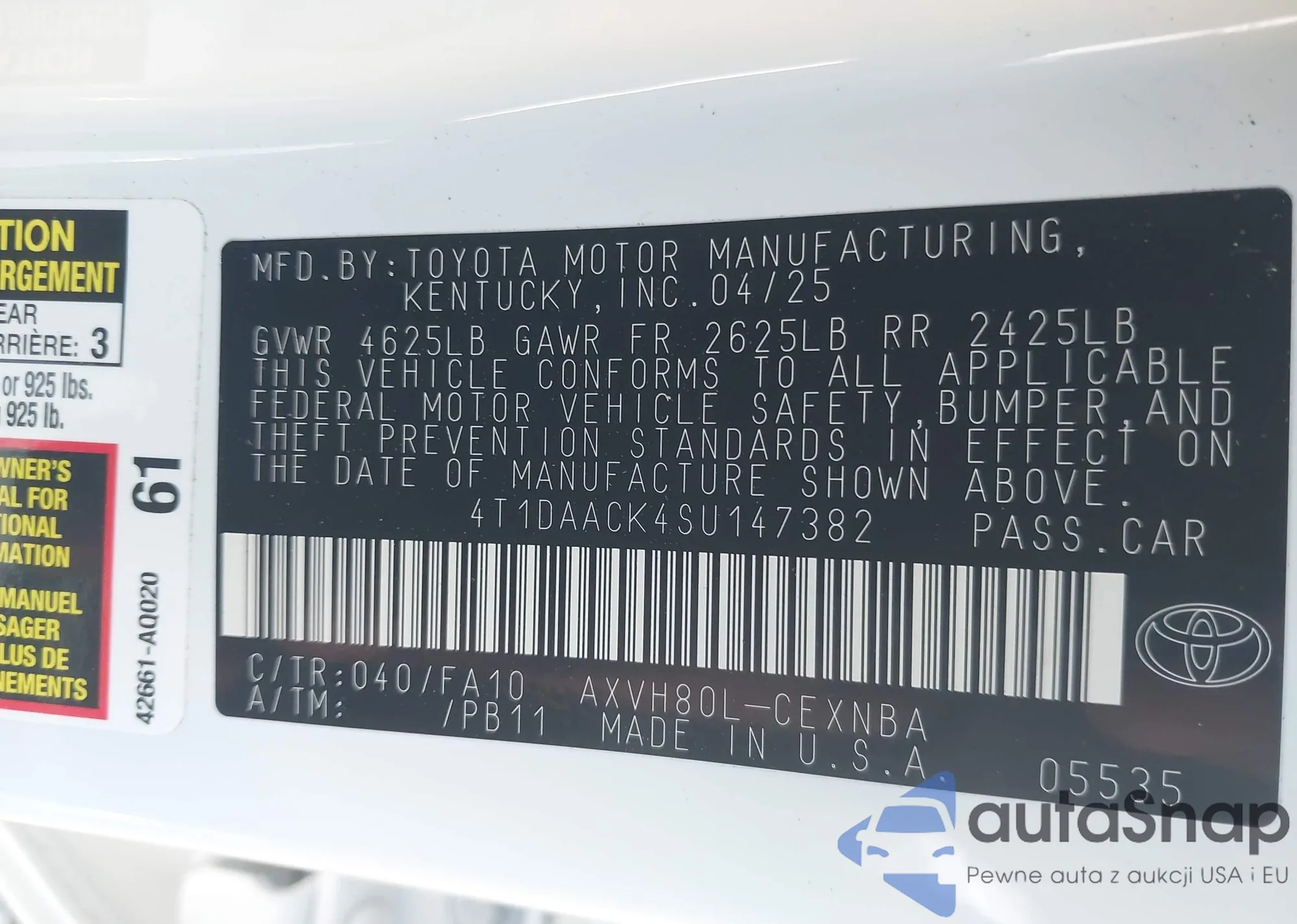 LOT: 43514339 VIN: 4T1DAACK4SU147382