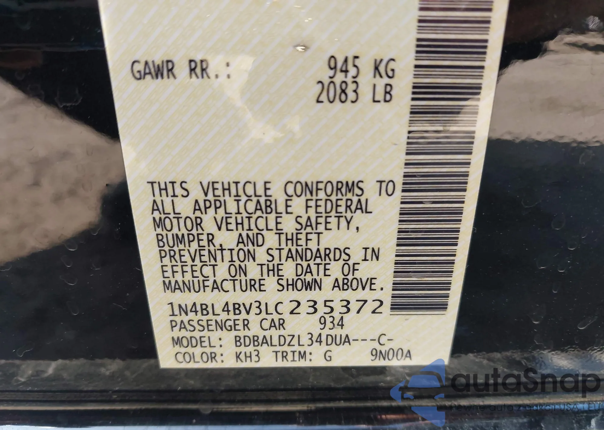 • VIN 1N4BL4BV3LC235372