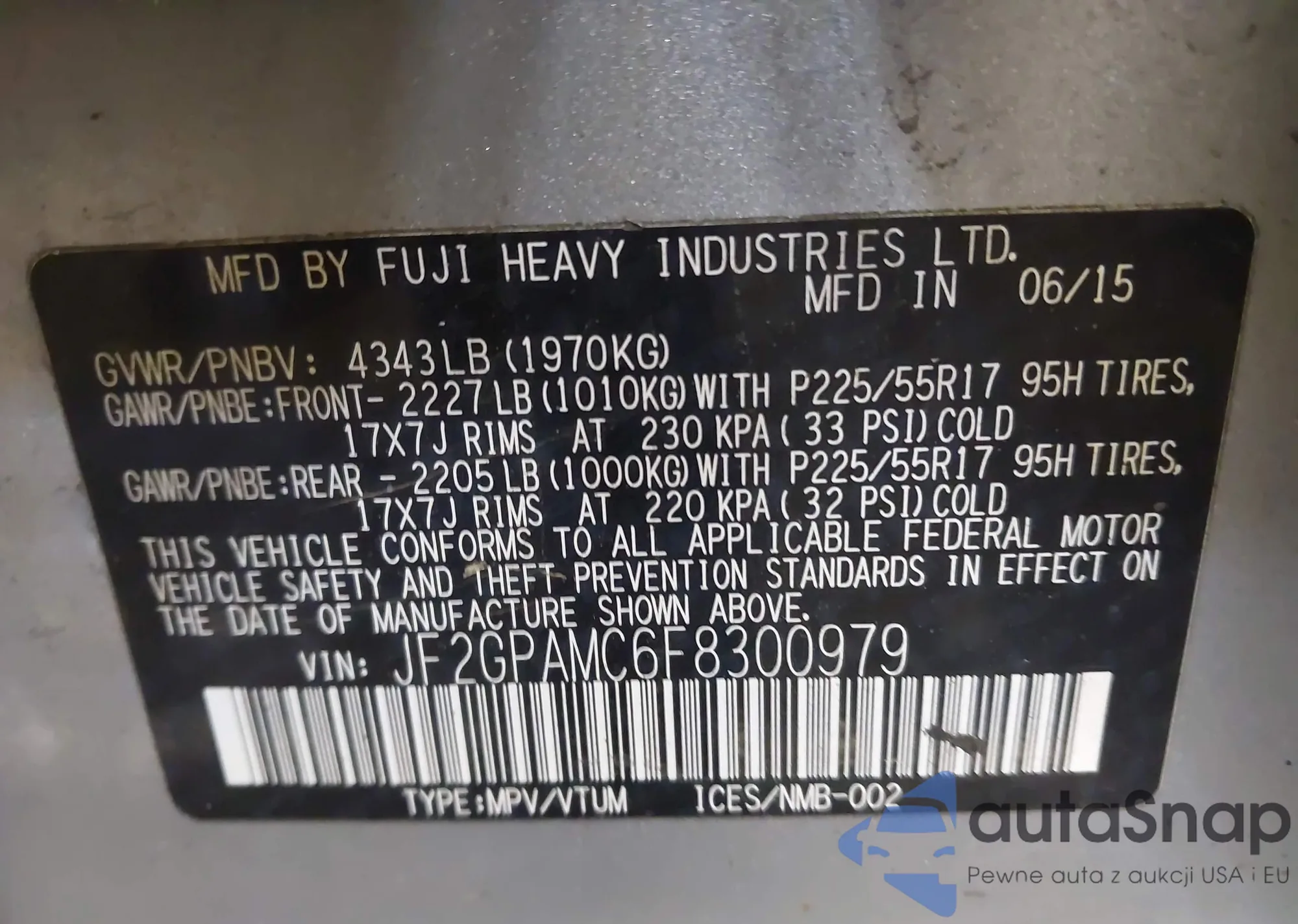 LOT: 43611301 VIN: JF1GPAR6XEH328936