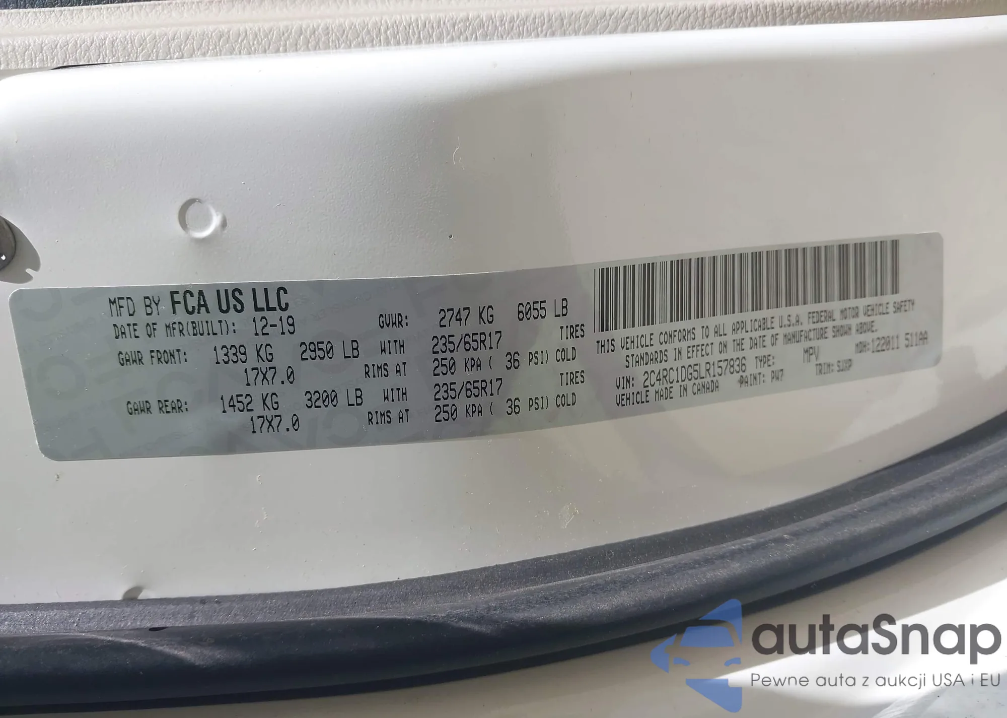 • VIN 2C4RC1DG5LR157836