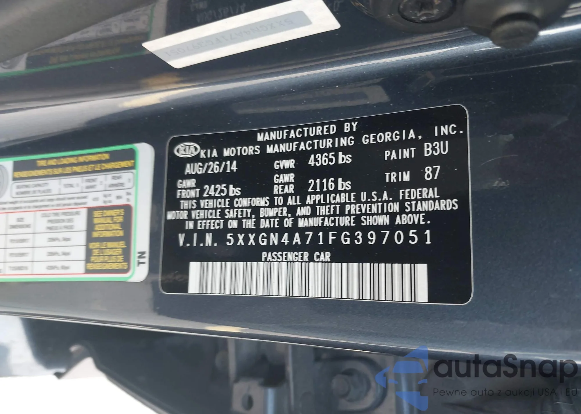 LOT: 43664982 VIN: 5XXGN4A71FG397051